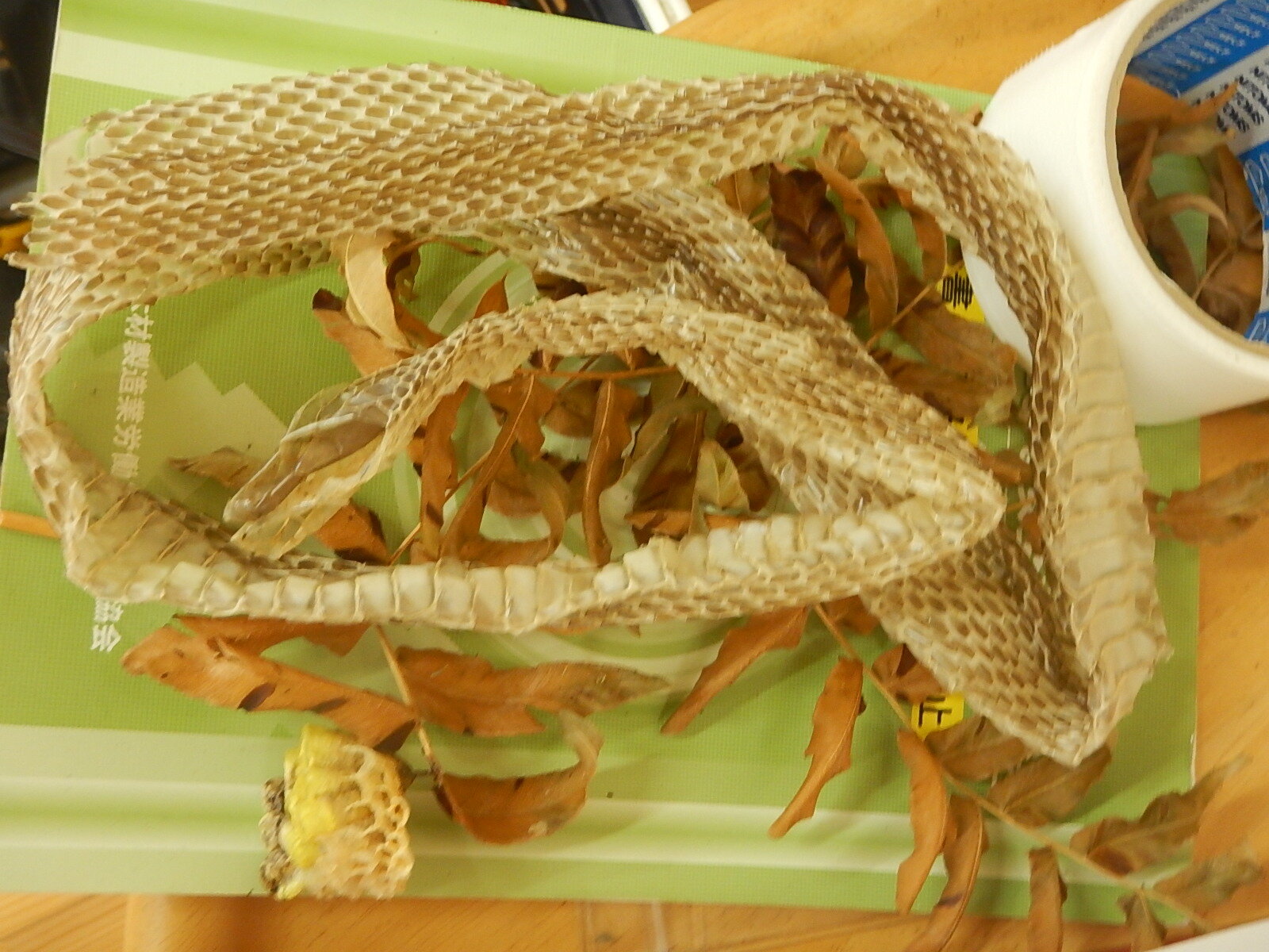 受付に、前回の活動の際に採取した蛇の抜け殻が展示されていました。