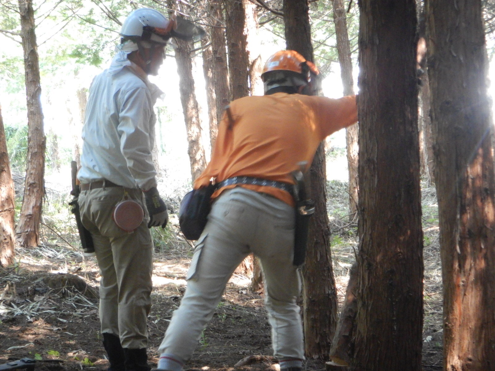 安全講習では、道具の安全な使い方、雪害木の伐倒時には上下・接近作業を回避すること、また作業時の正しい安全な姿勢を説明しました。