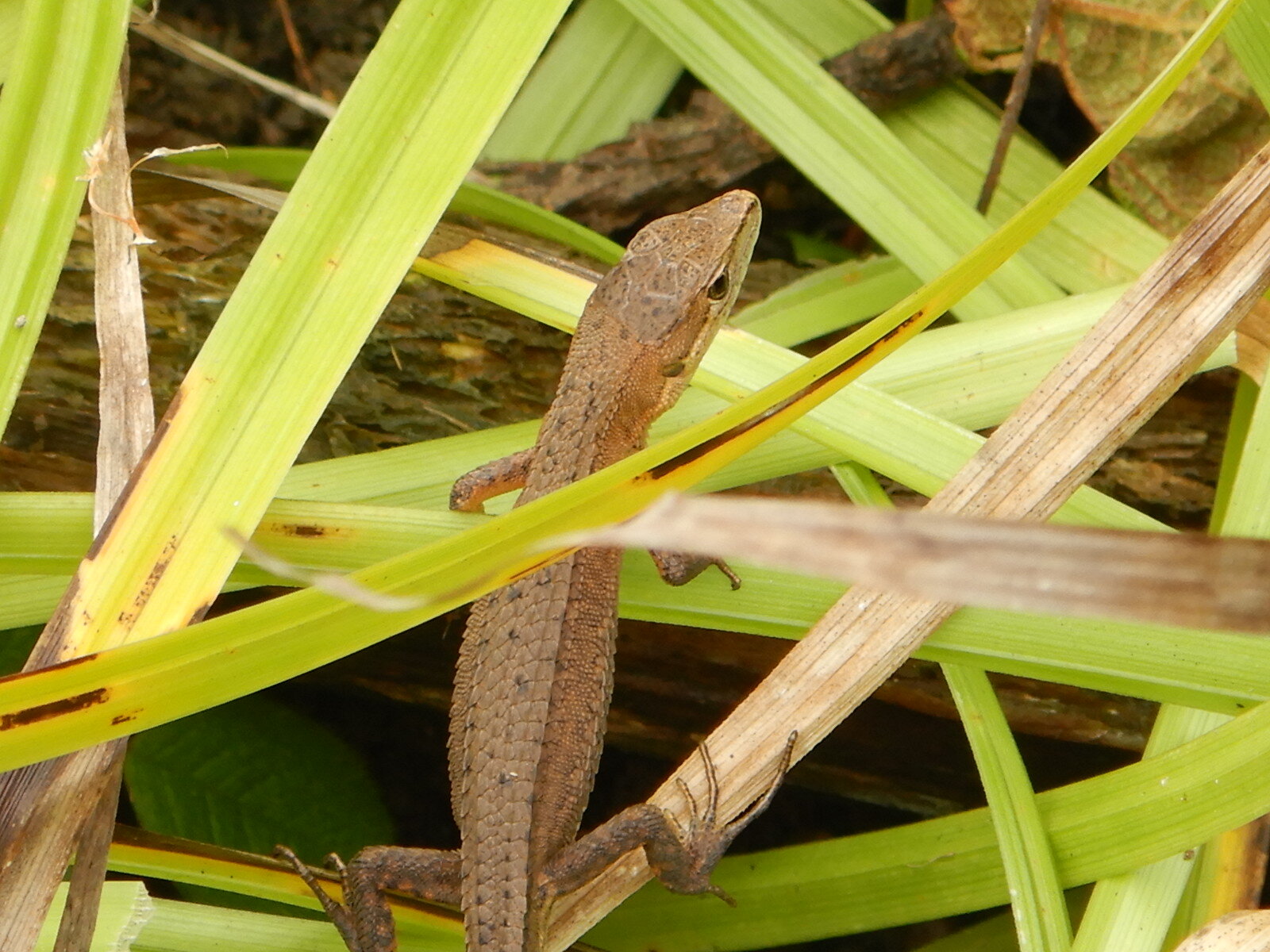 下刈りした草の中にはいろいろな生き物が出てきます。写真はニホンカナヘビと思われます。