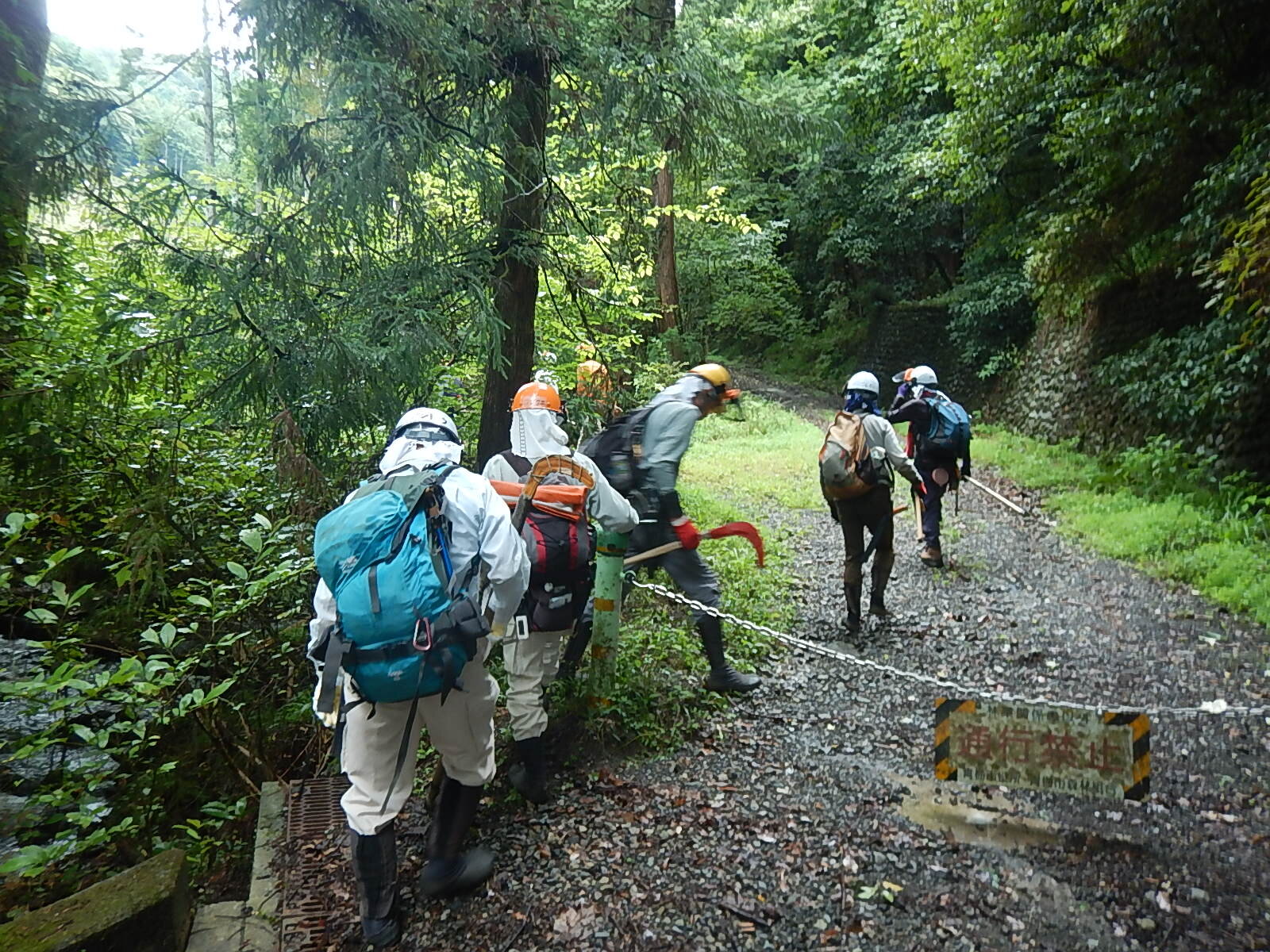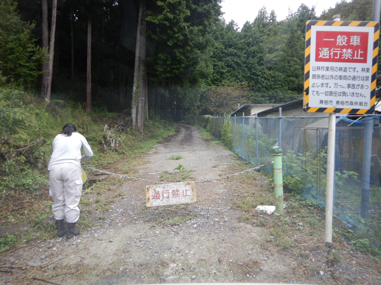 作業現場までは林道の鍵を開けてさらに奥に入っていきます。