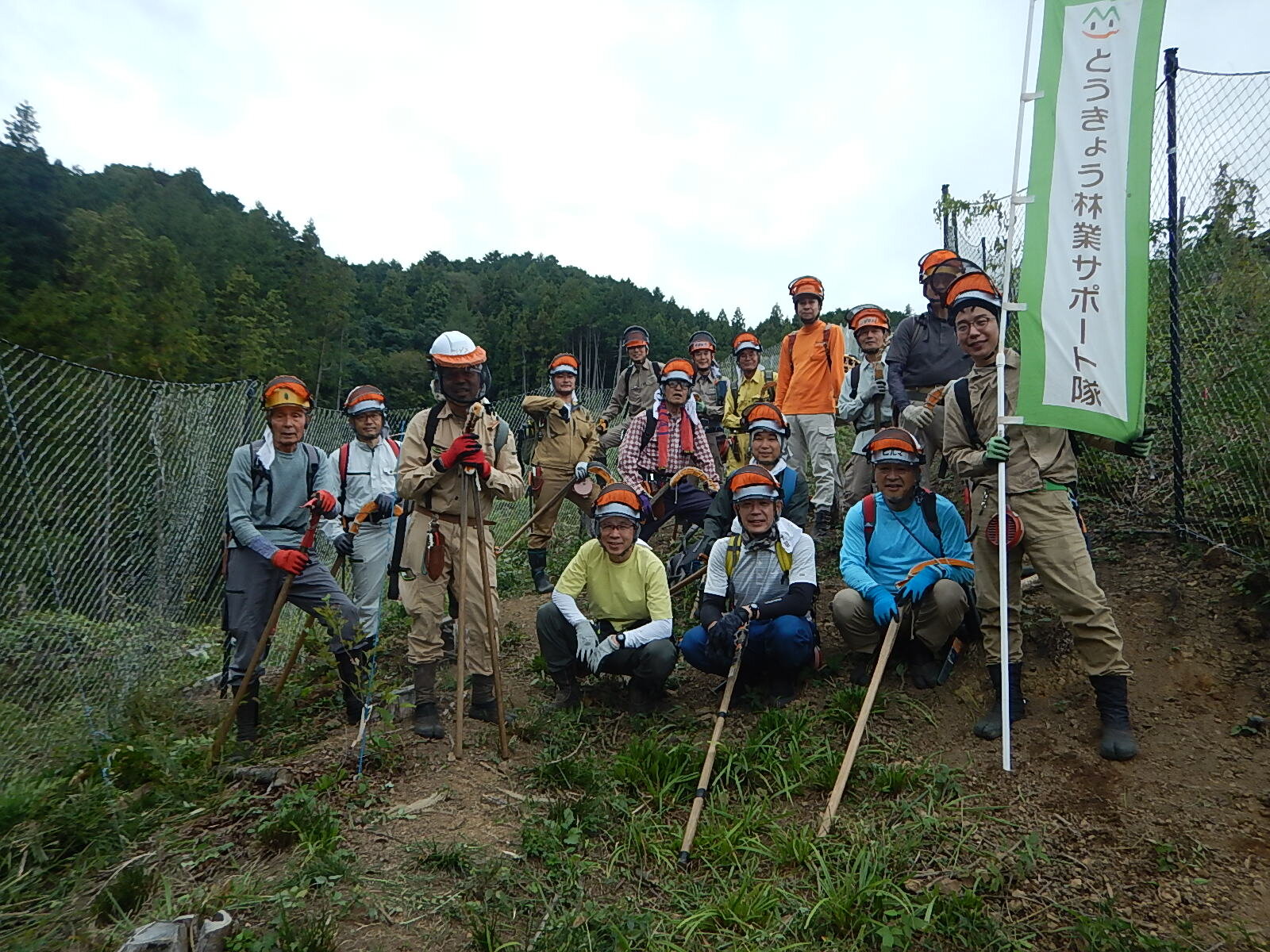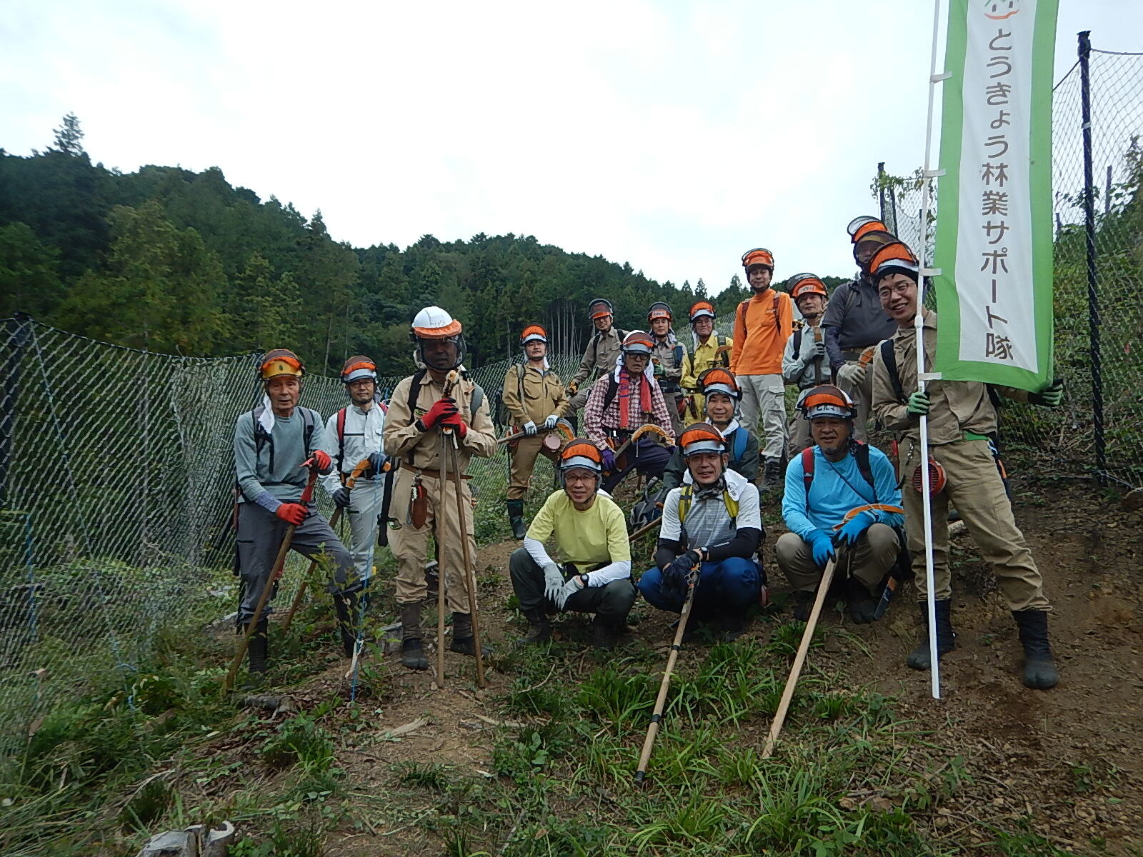 A:もともと体を使う仕事や自然と触れ合う仕事、山にかかわる仕事に興味を持っていました。また、高校のときに林業の授業があってそこで林業の体験をした事もあり、いつか林業の仕事をしてみたいと思っていました。とうきょう林業サポート隊には4年前にメンバー登録しました。山城とかも行っていて、山登りもやっています。