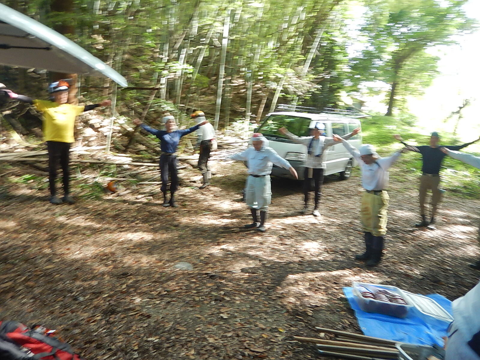 9:45 現地到着 準備体操、危険予知活動