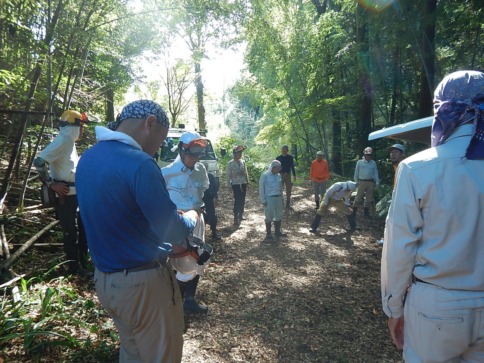 山頂付近でのんびりお昼休憩をとってから、山を下りて作業に戻ります。