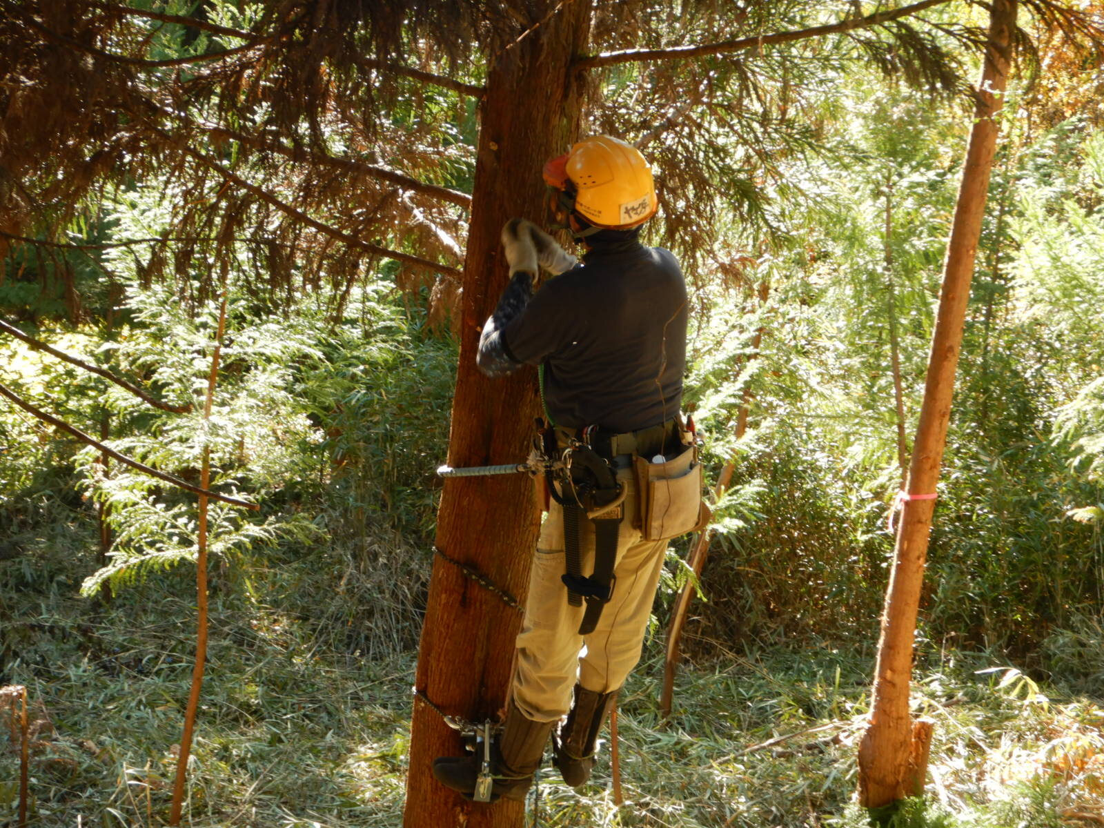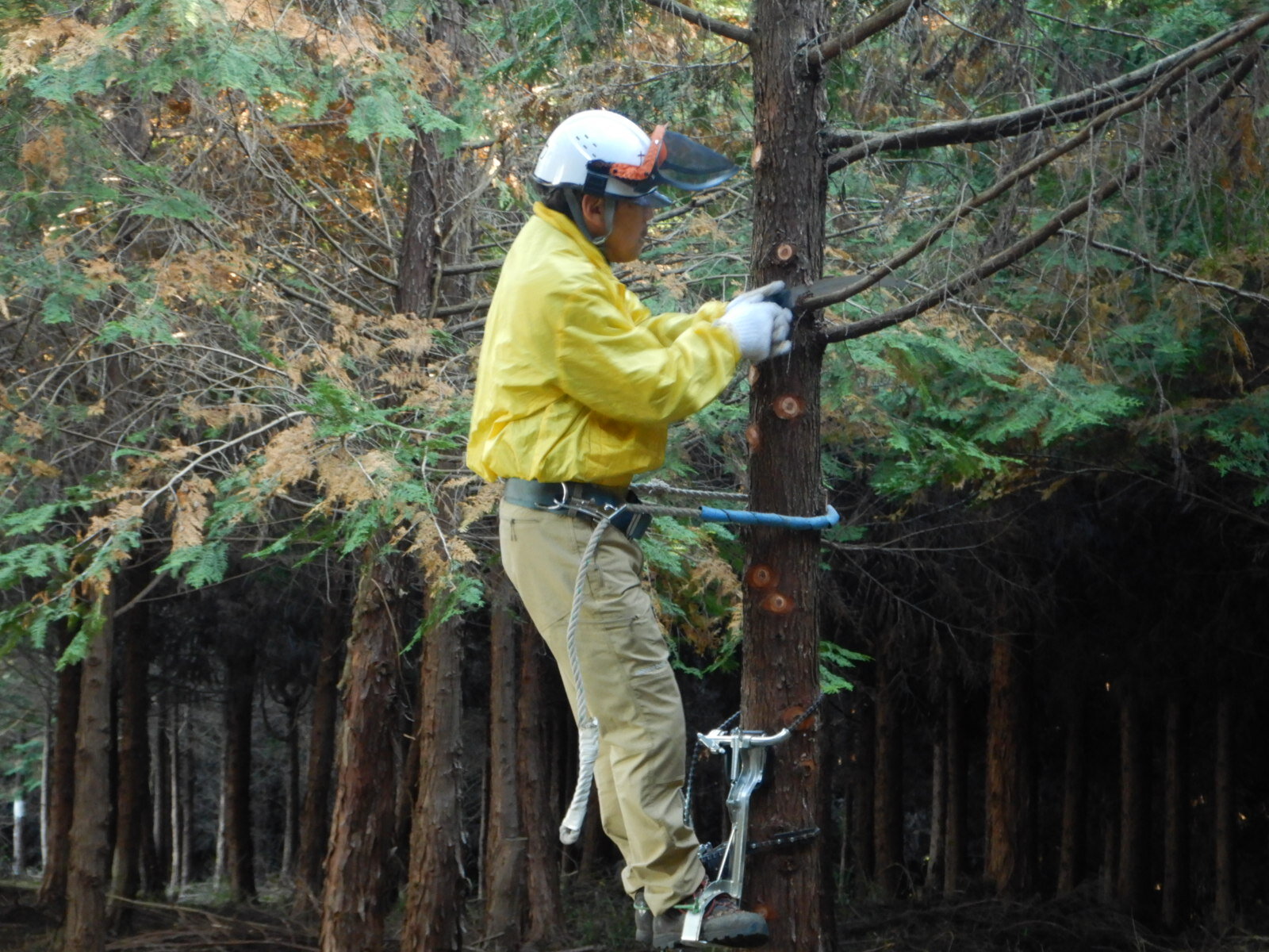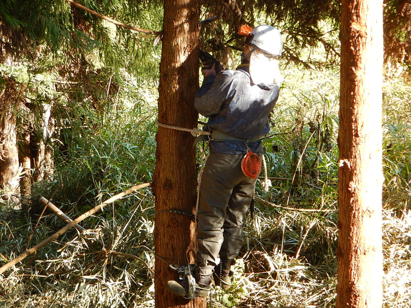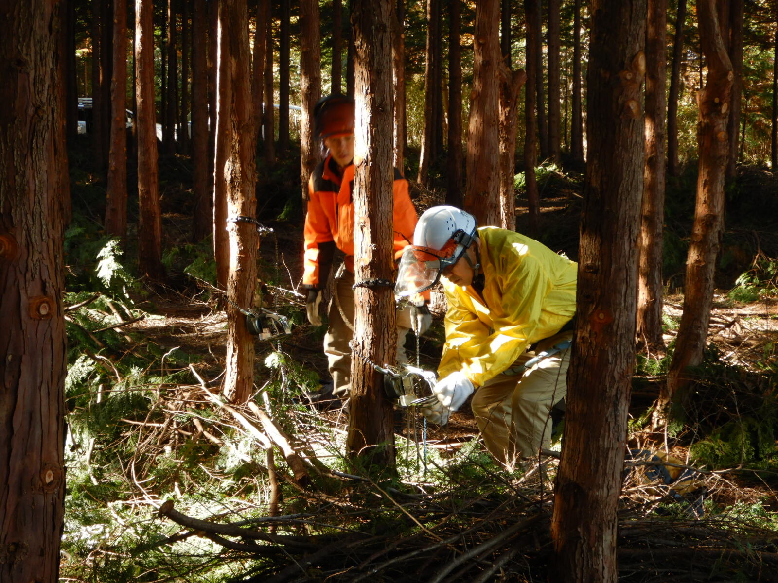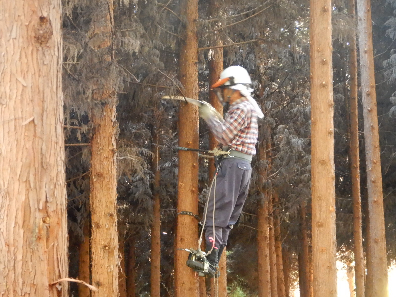 午後も枝打ちを進めます。初めてのメンバーも午後には枝打ちができるようになります。