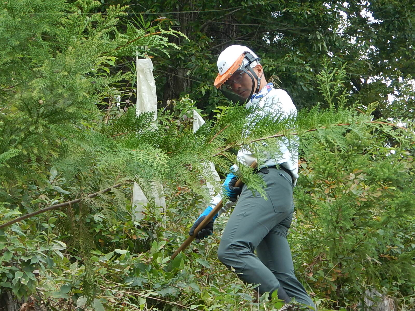 草木が生茂り若木が分かりづらいので、誤伐しないように丁寧に作業を行いました。