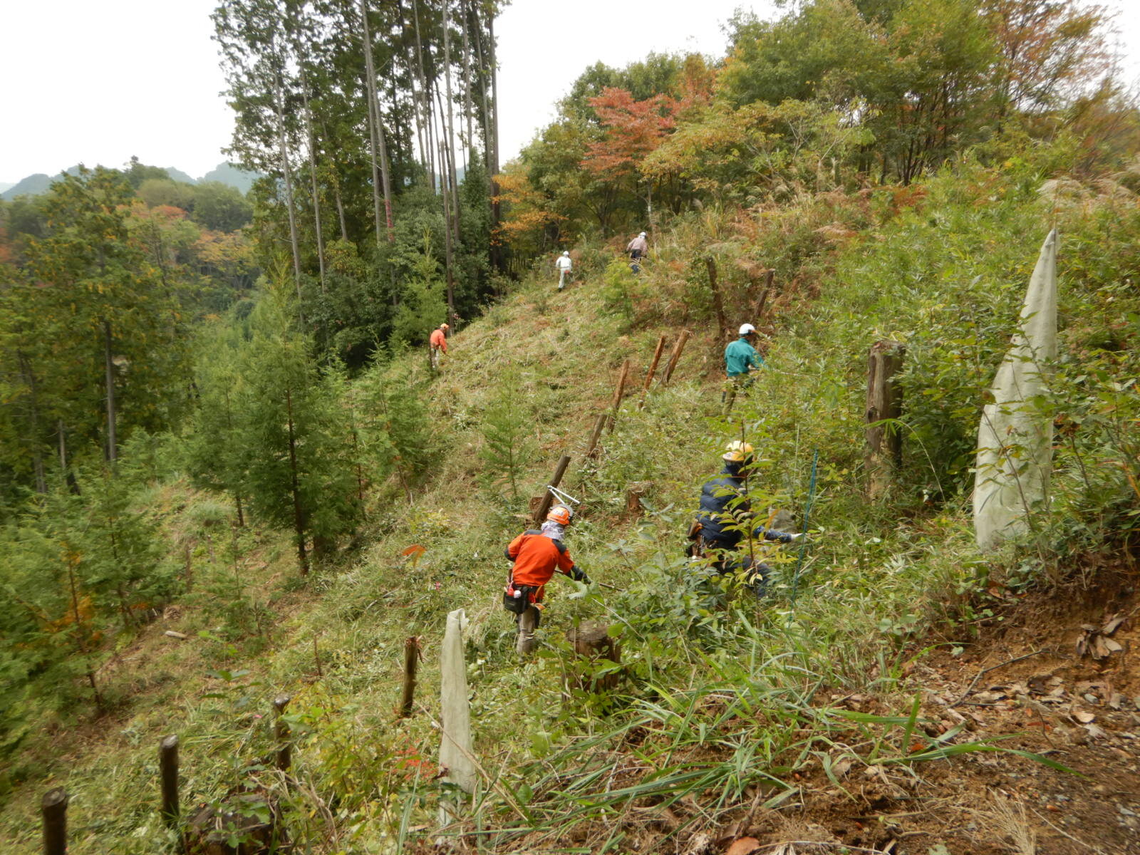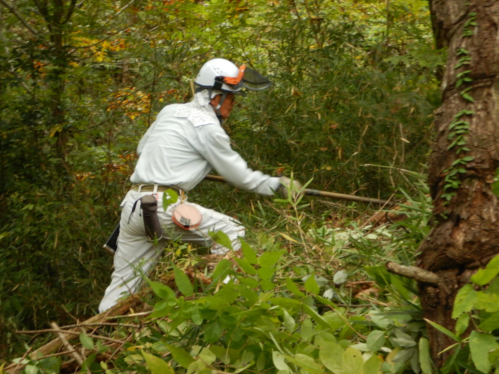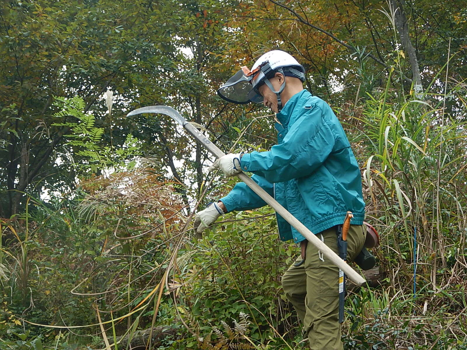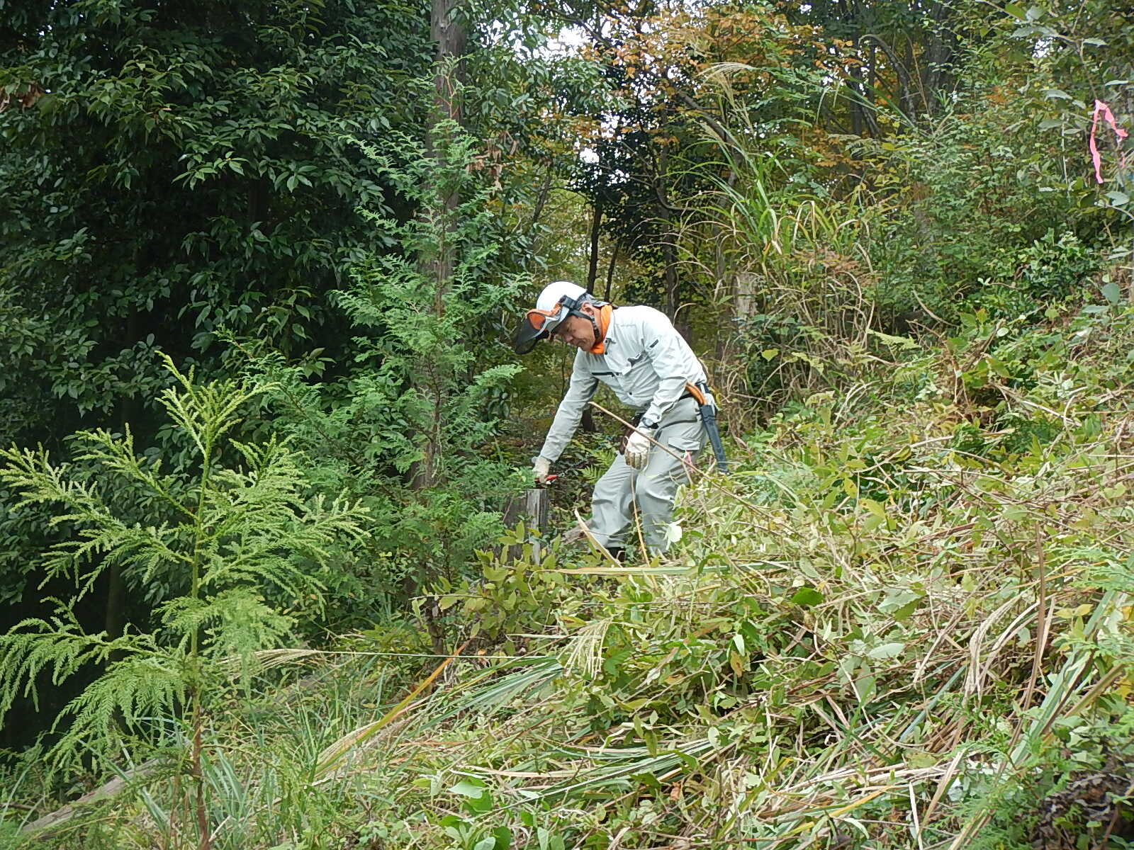急斜面での作業です。足元を確保しながら慎重に草木を処理していきます。