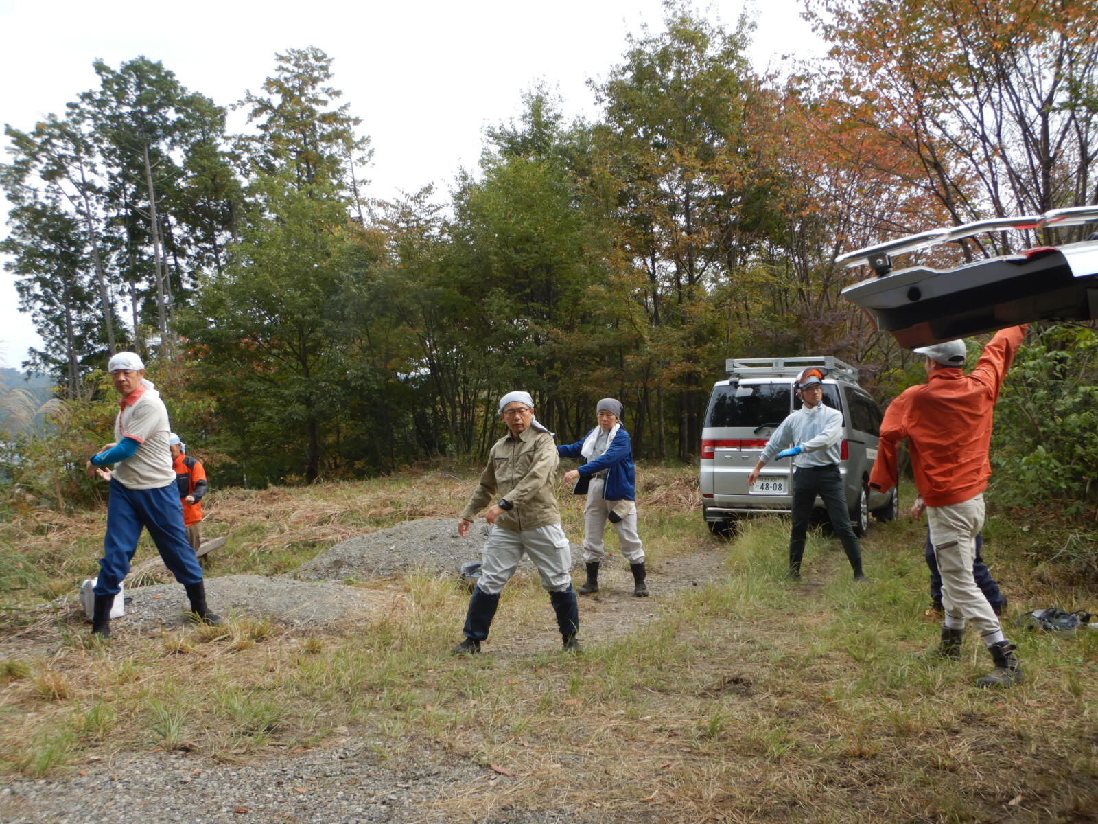 3班に分かれて作業を開始します。A・C班は歩いて活動地へ。B班は再度車に乗り込み150m程下った活動地へ移動しました。
