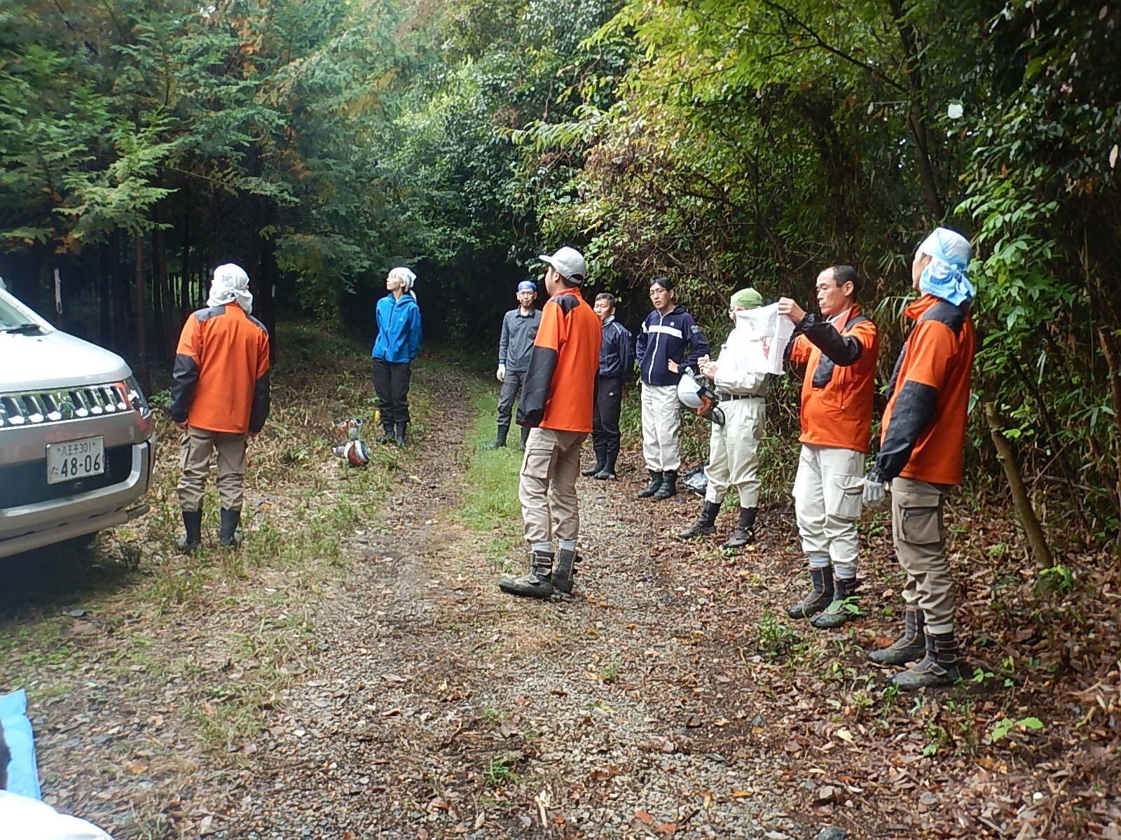 初参加の方や、枝打ちは経験があるけれどはしごを使っての枝打ちは初めてという方には、指導員がはしごを立てる位置の説明から始めました。