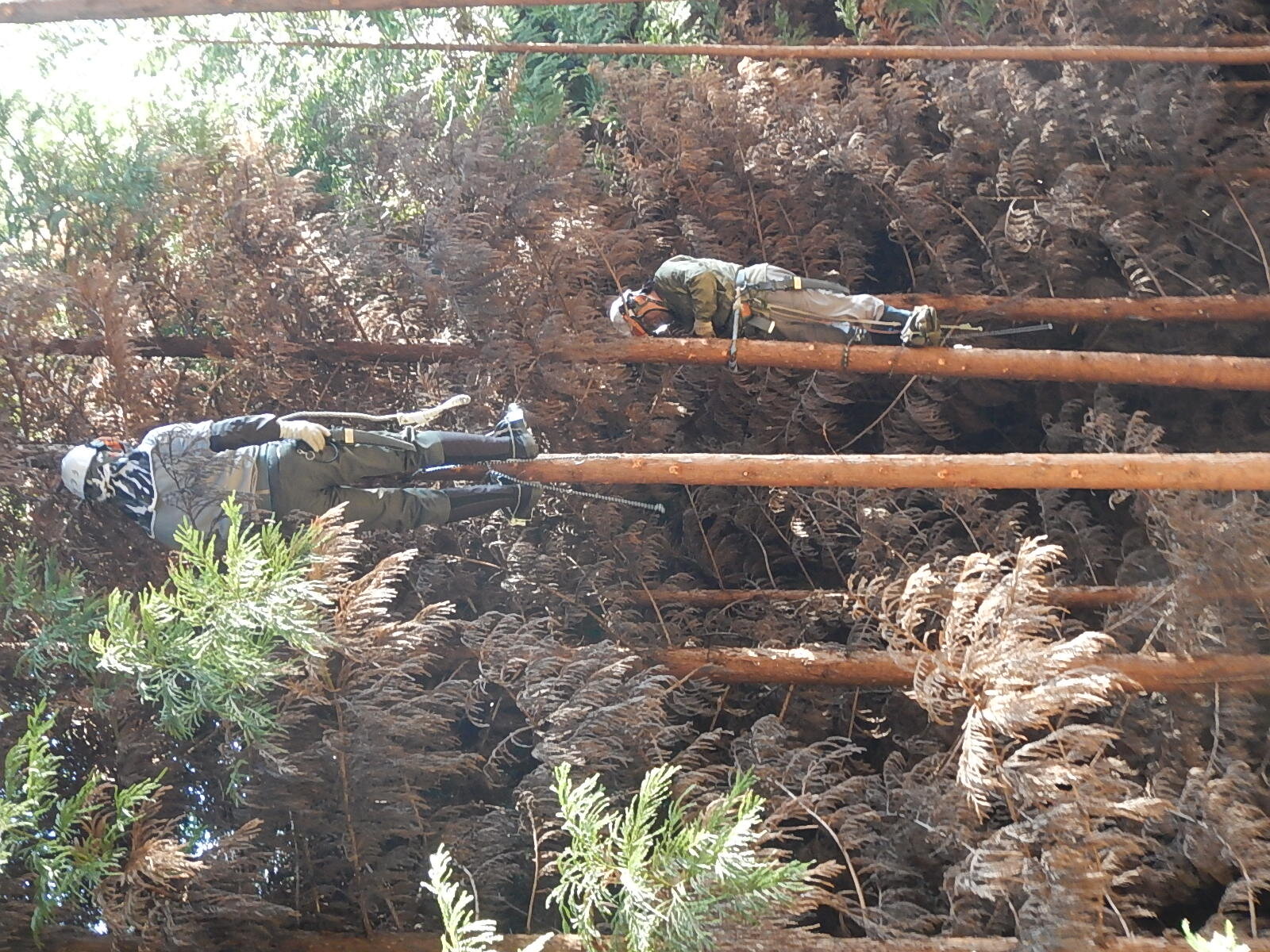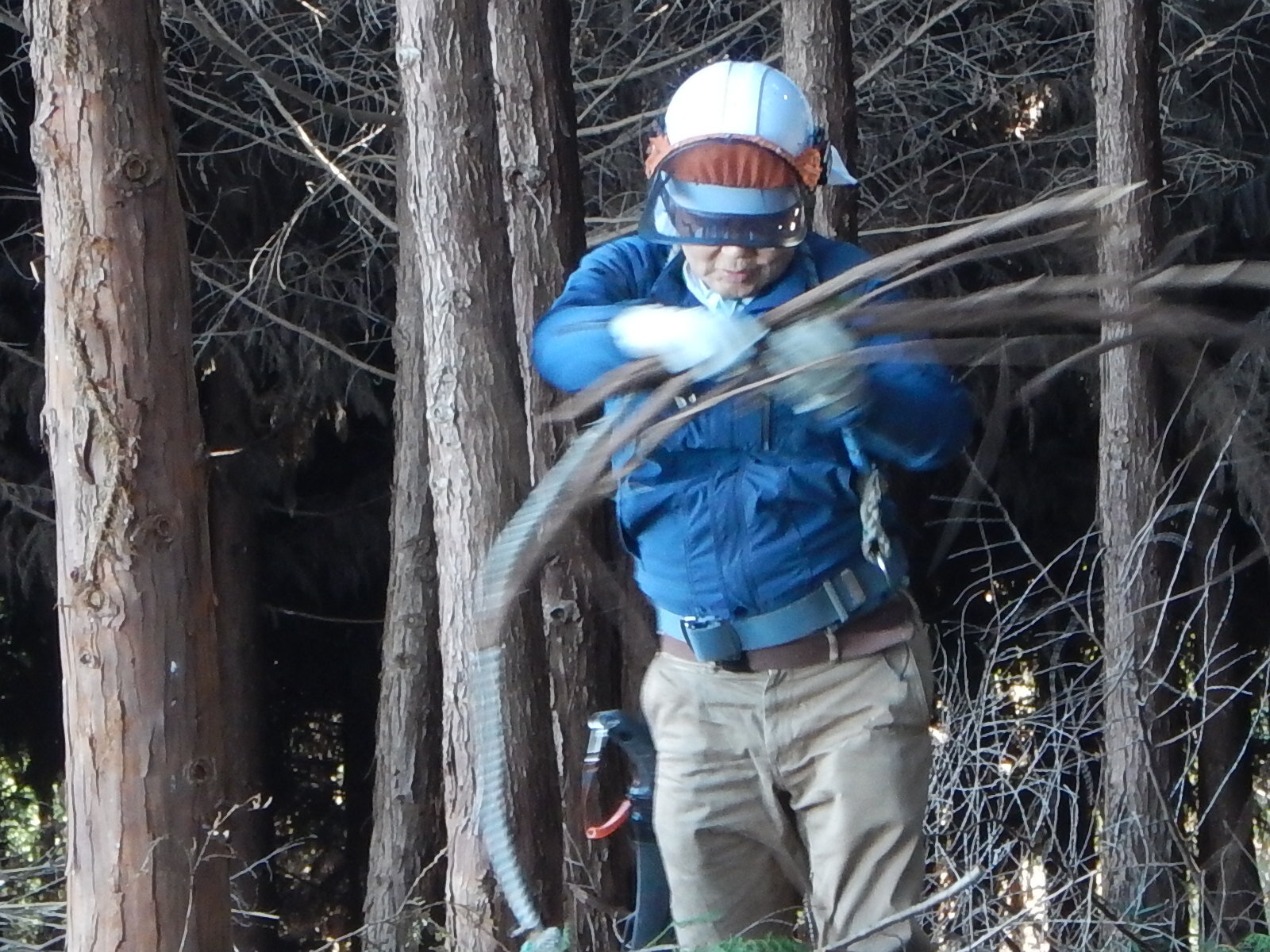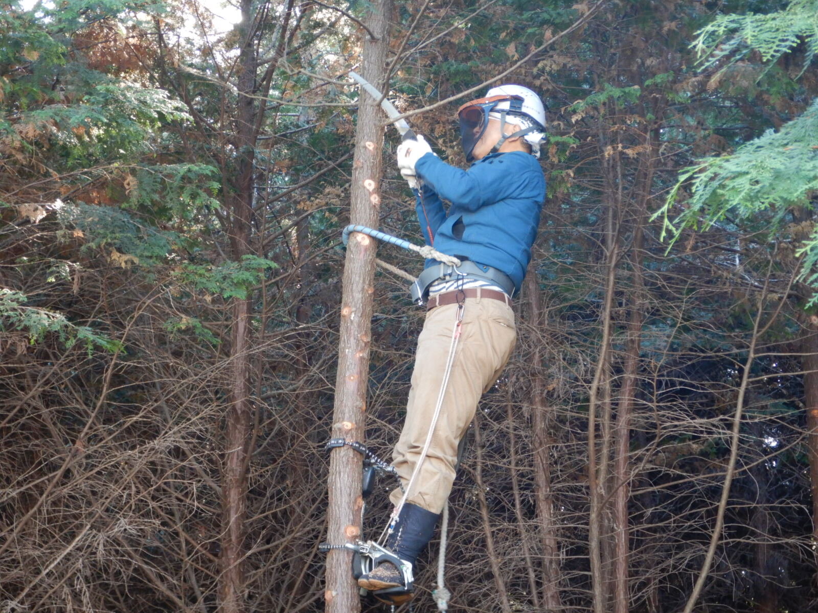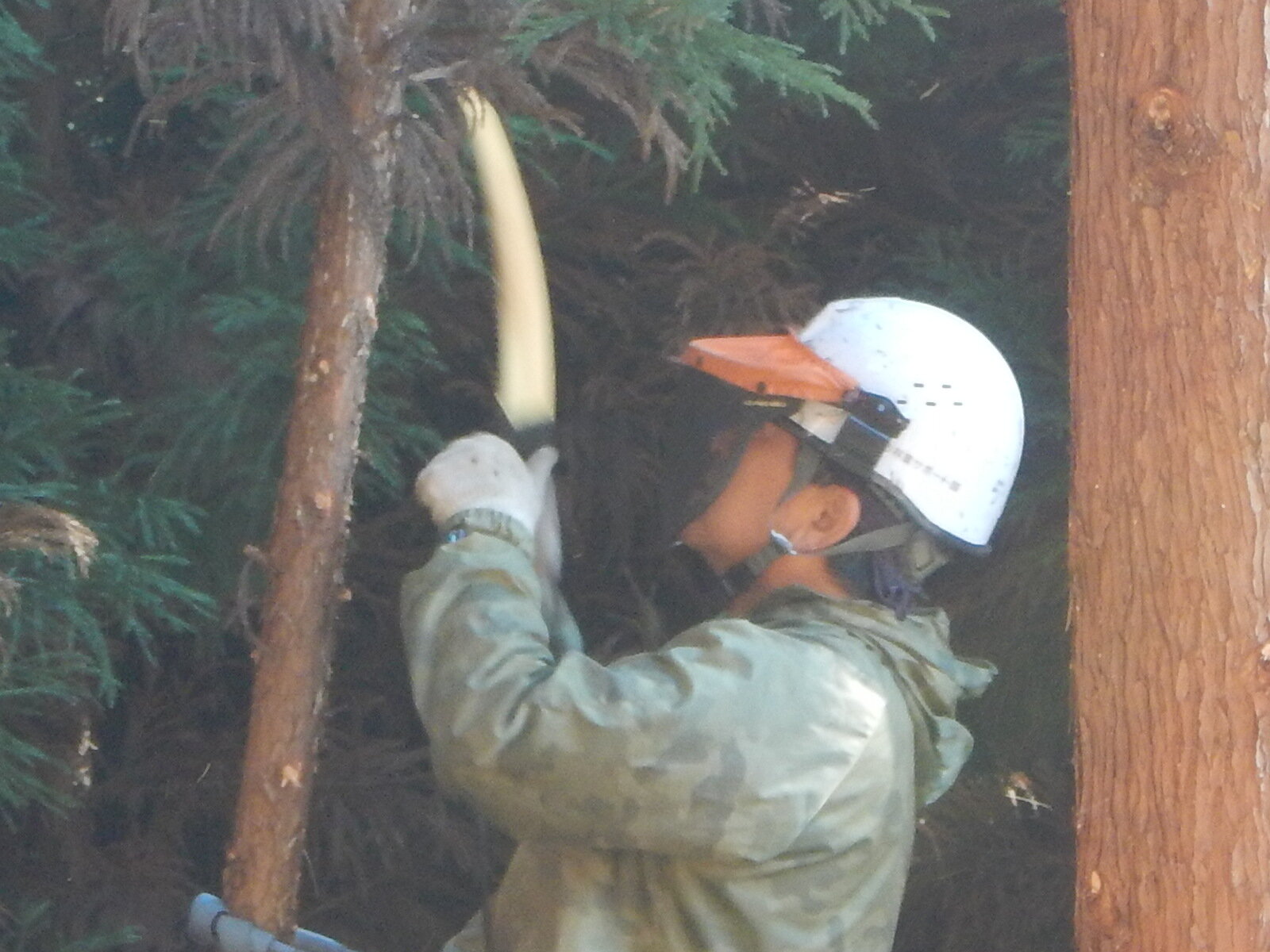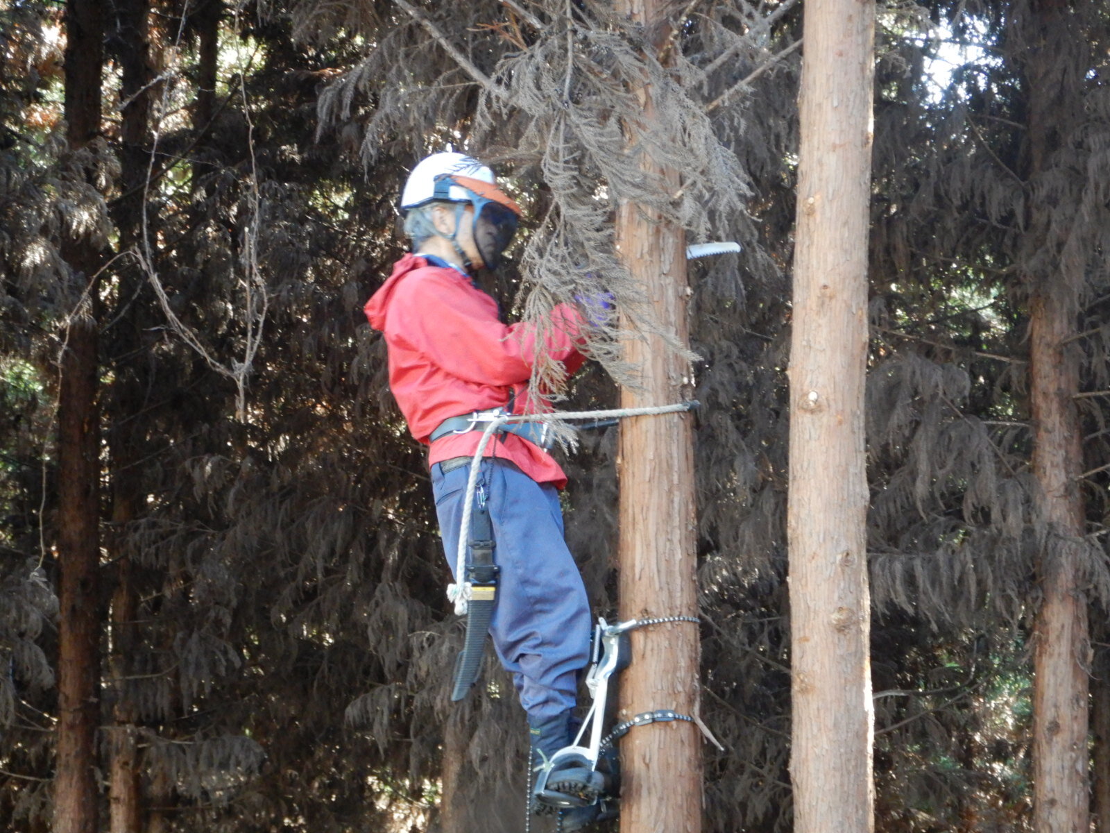 どの枝をきるか、下で見守る指導員の指示に従って枝を切っていきます。