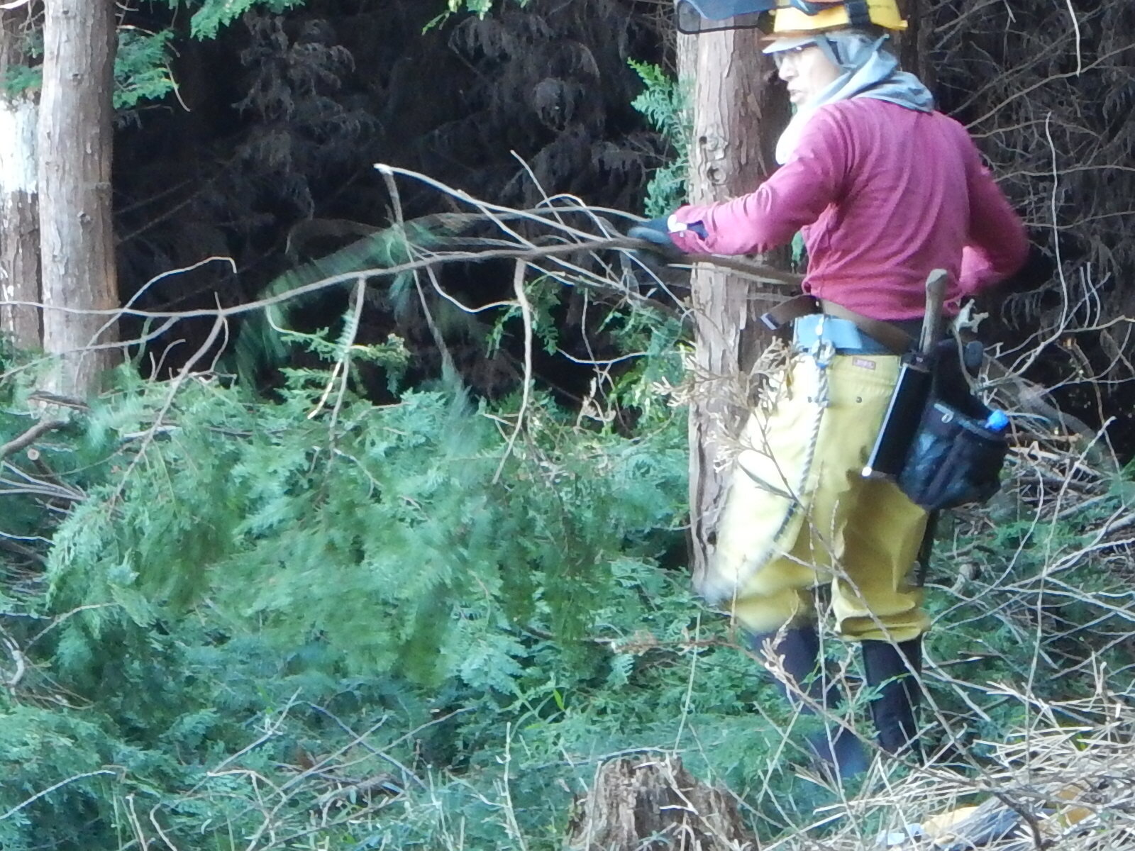 ベテラン勢は指導員の指示の下、早速枝打ち開始。