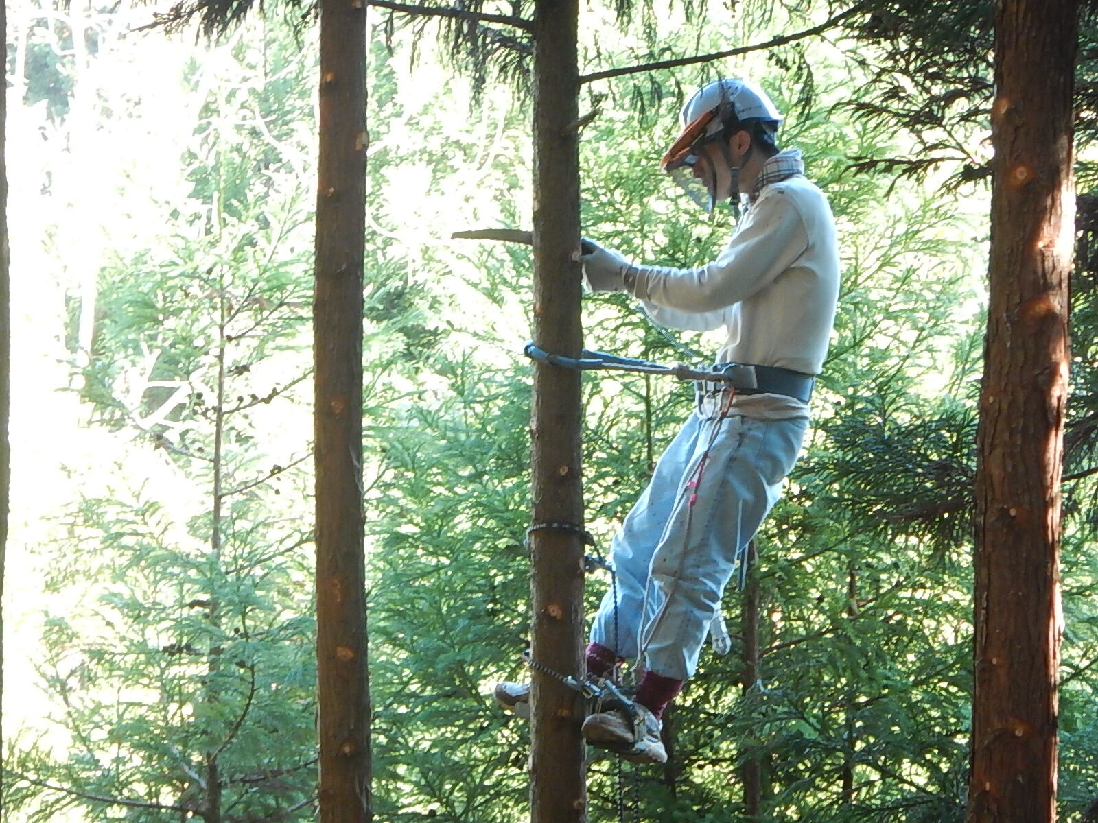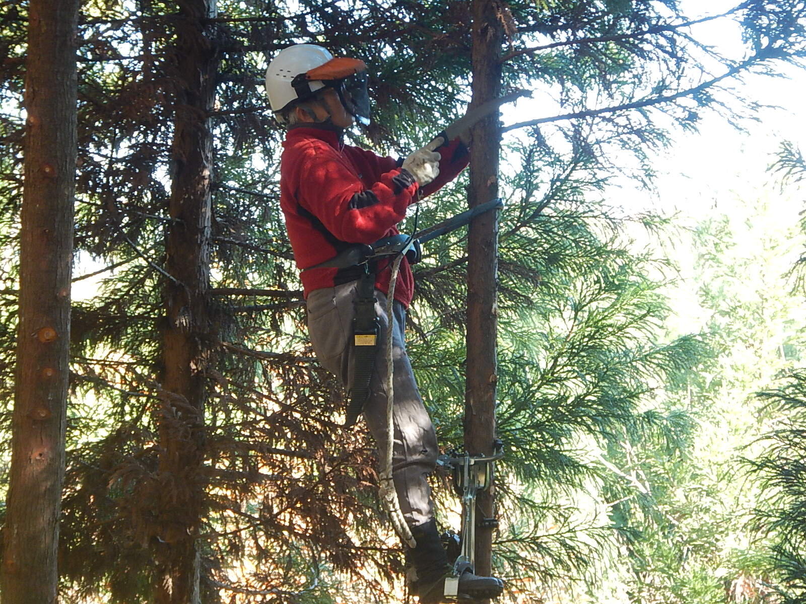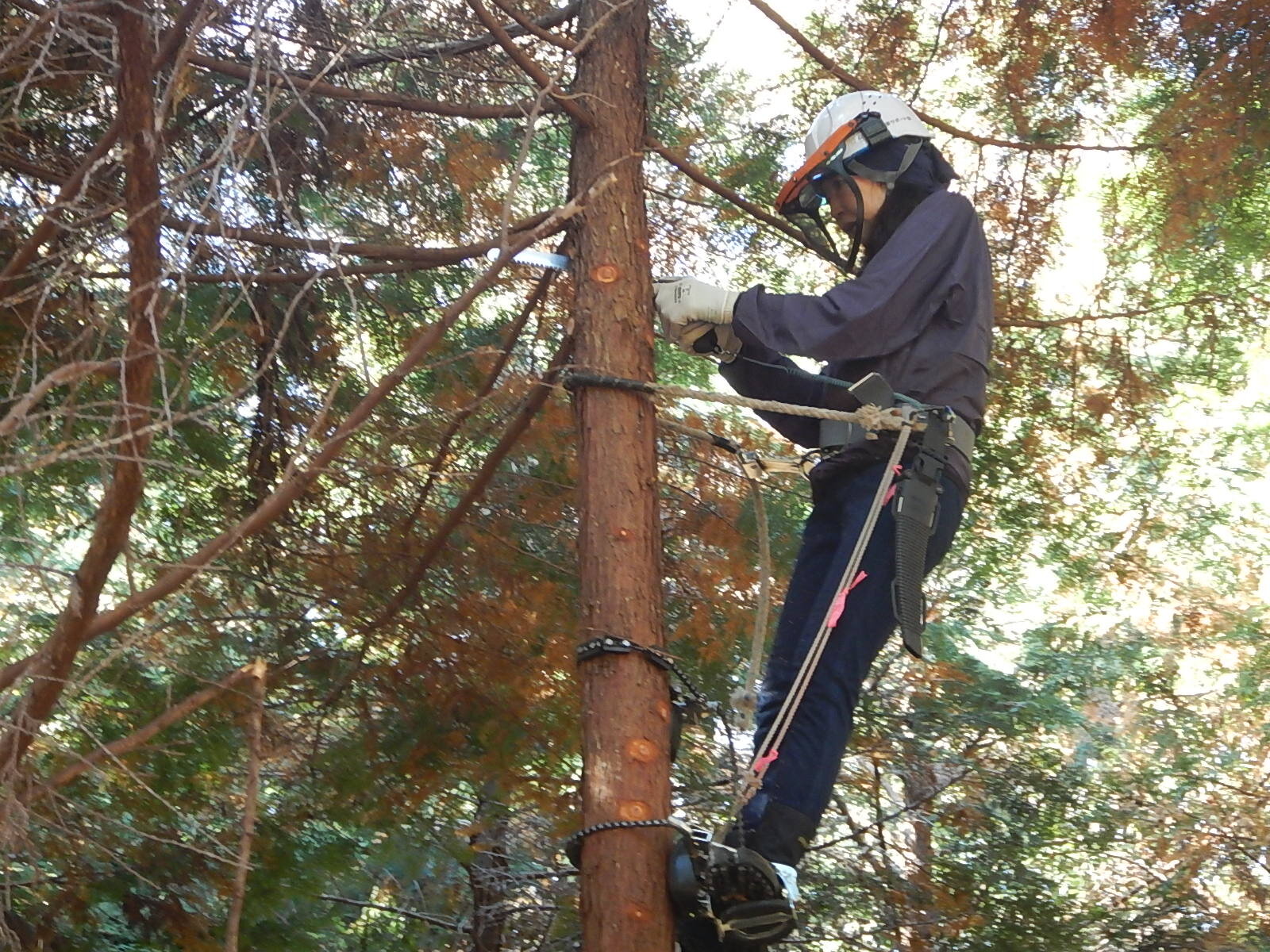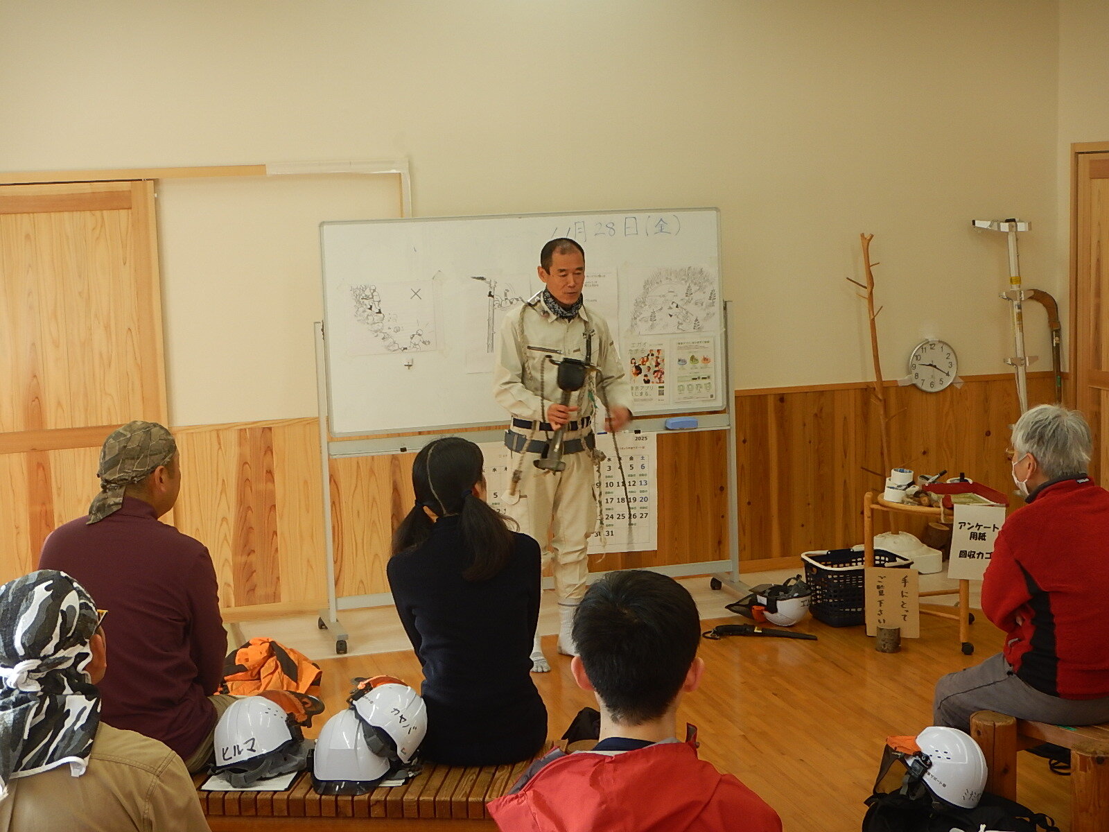 安全講習では主に登降機と安全帯の使い方を説明し、鋸の基本的な使い方についても説明します。