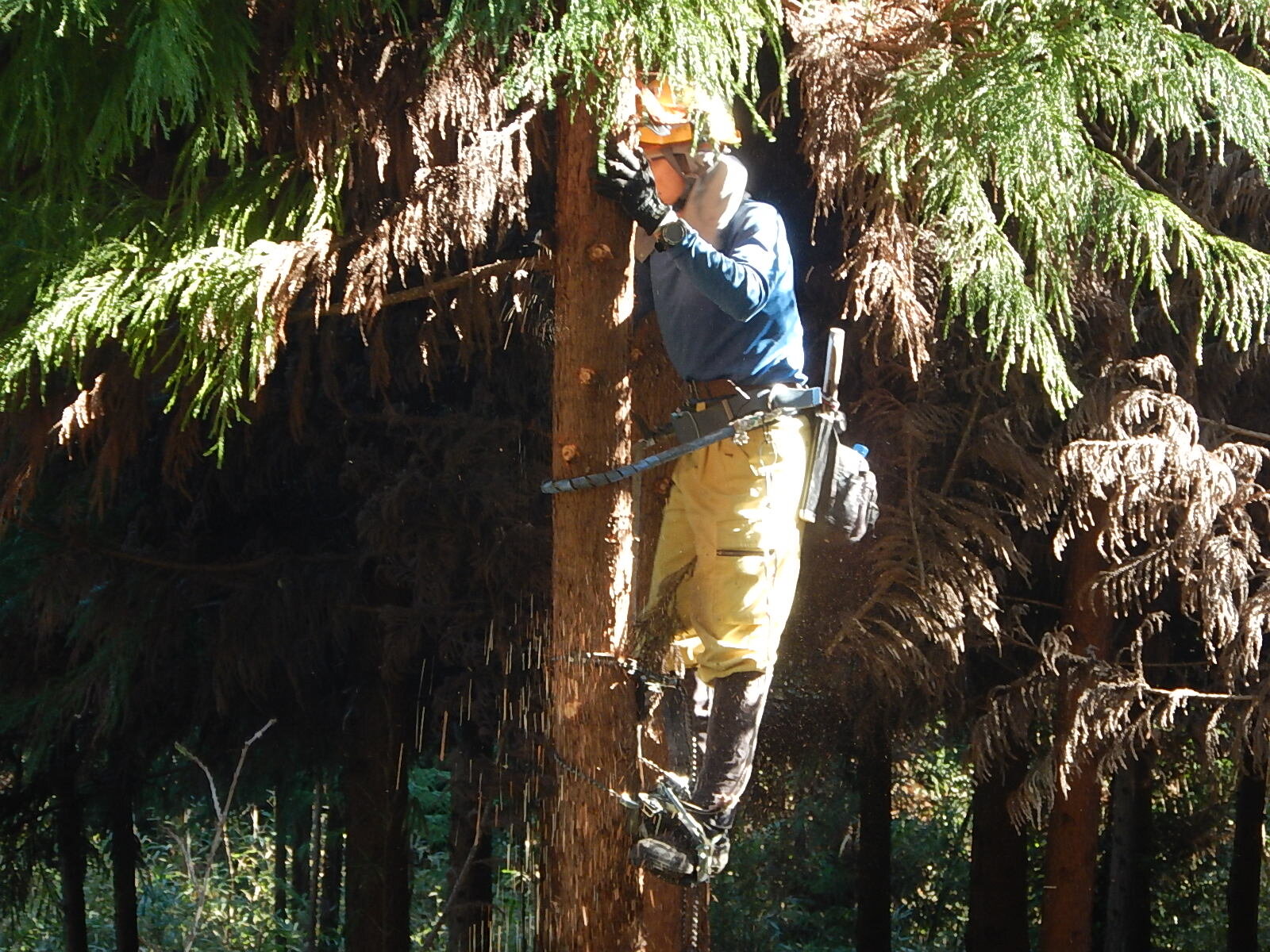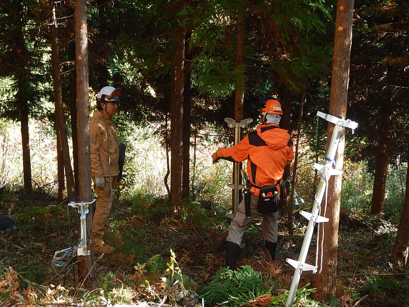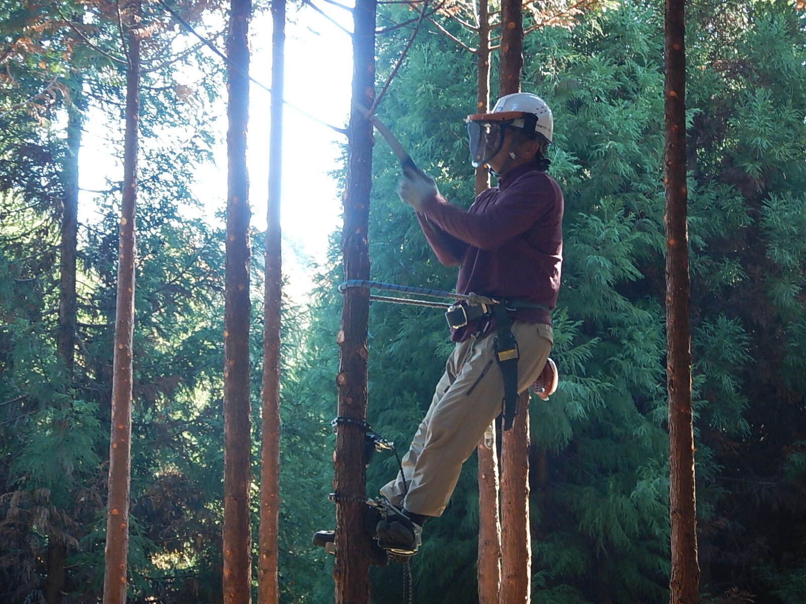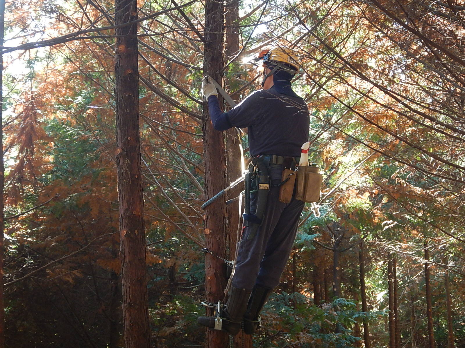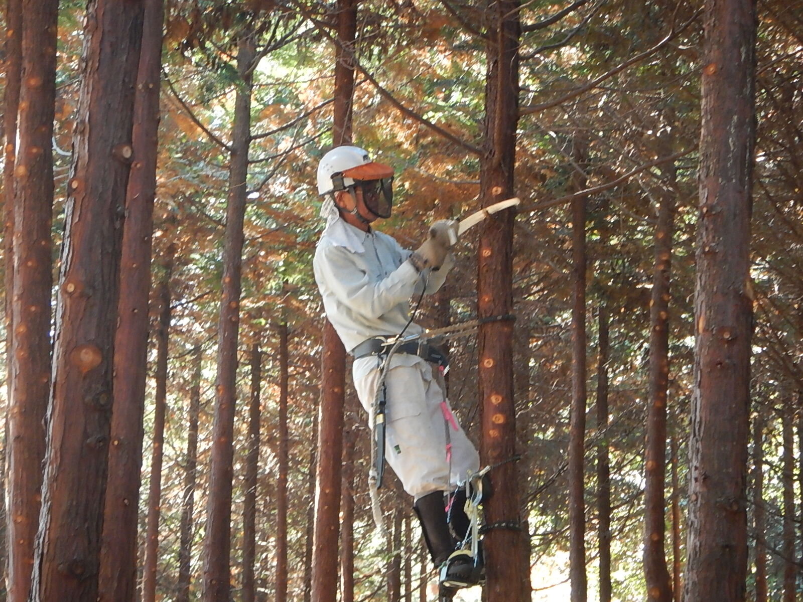 安全講習では主に登降機と安全帯の使い方を説明し、鋸の基本的な使い方についても説明します。