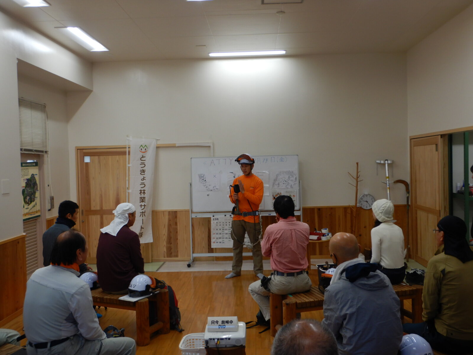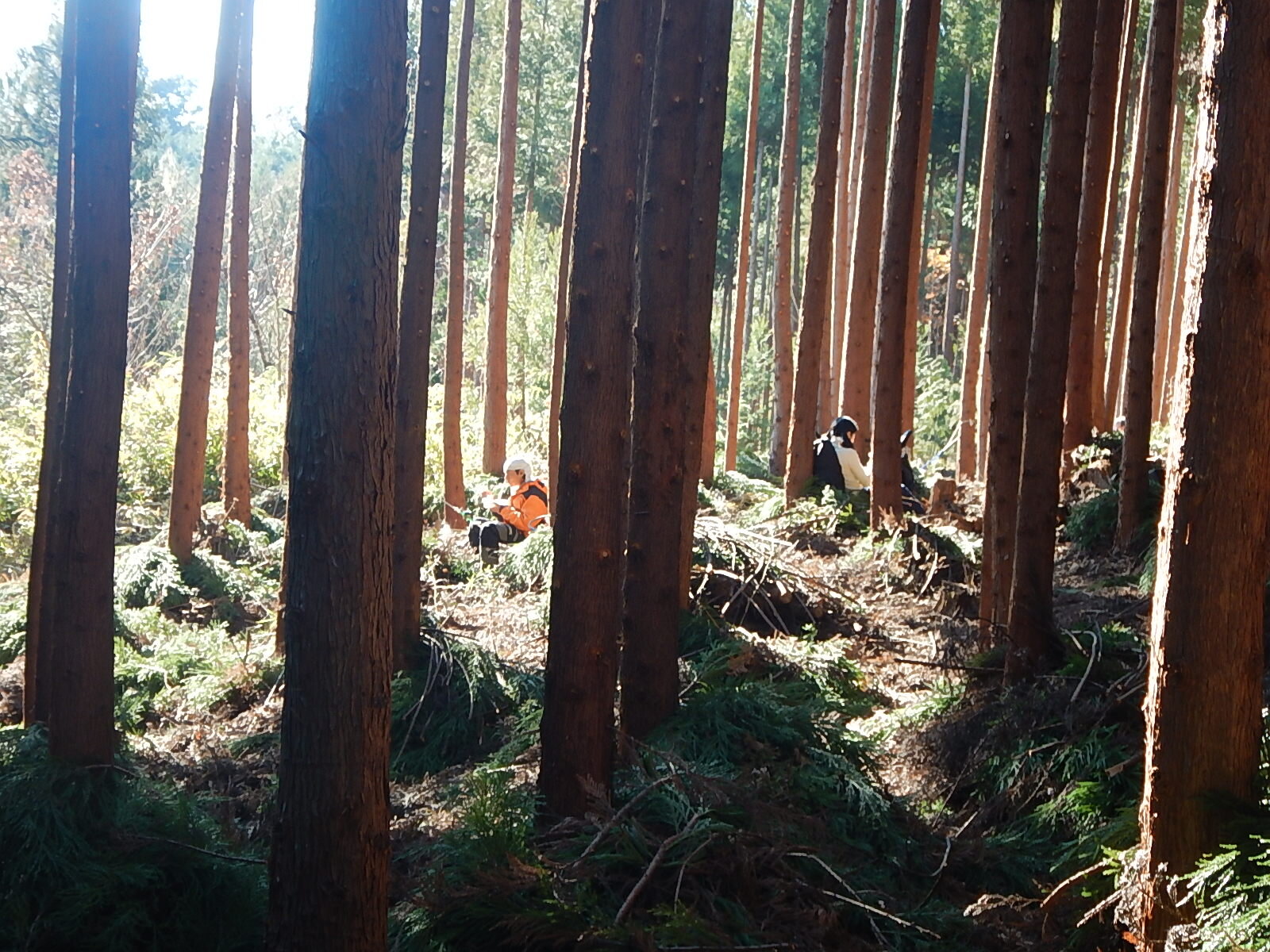 日差しのある場所では寒さを感じません。皆さんのんびり過ごしています。枝打ちが進んでいくと光が入り込んで陽の当たる場所も増えていきます。