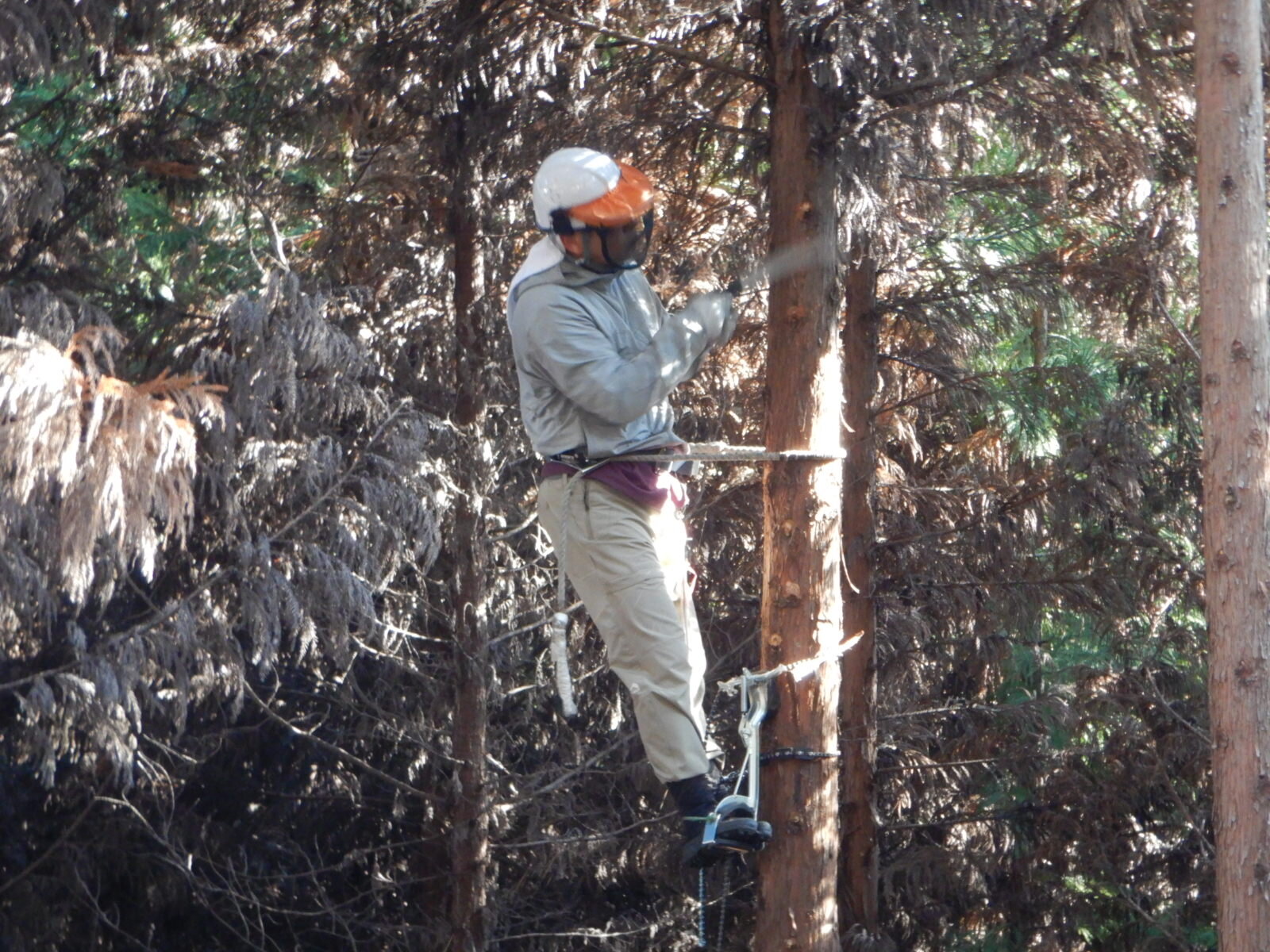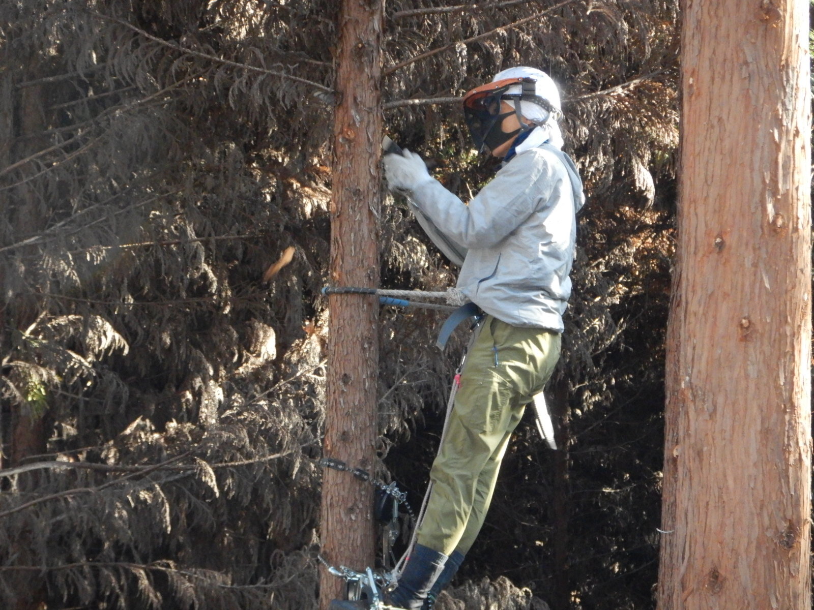 午後はあっという間に時間がたってしまいます。作業にノルマなどはないですが、時間を見ながら枝打ちを進めています。