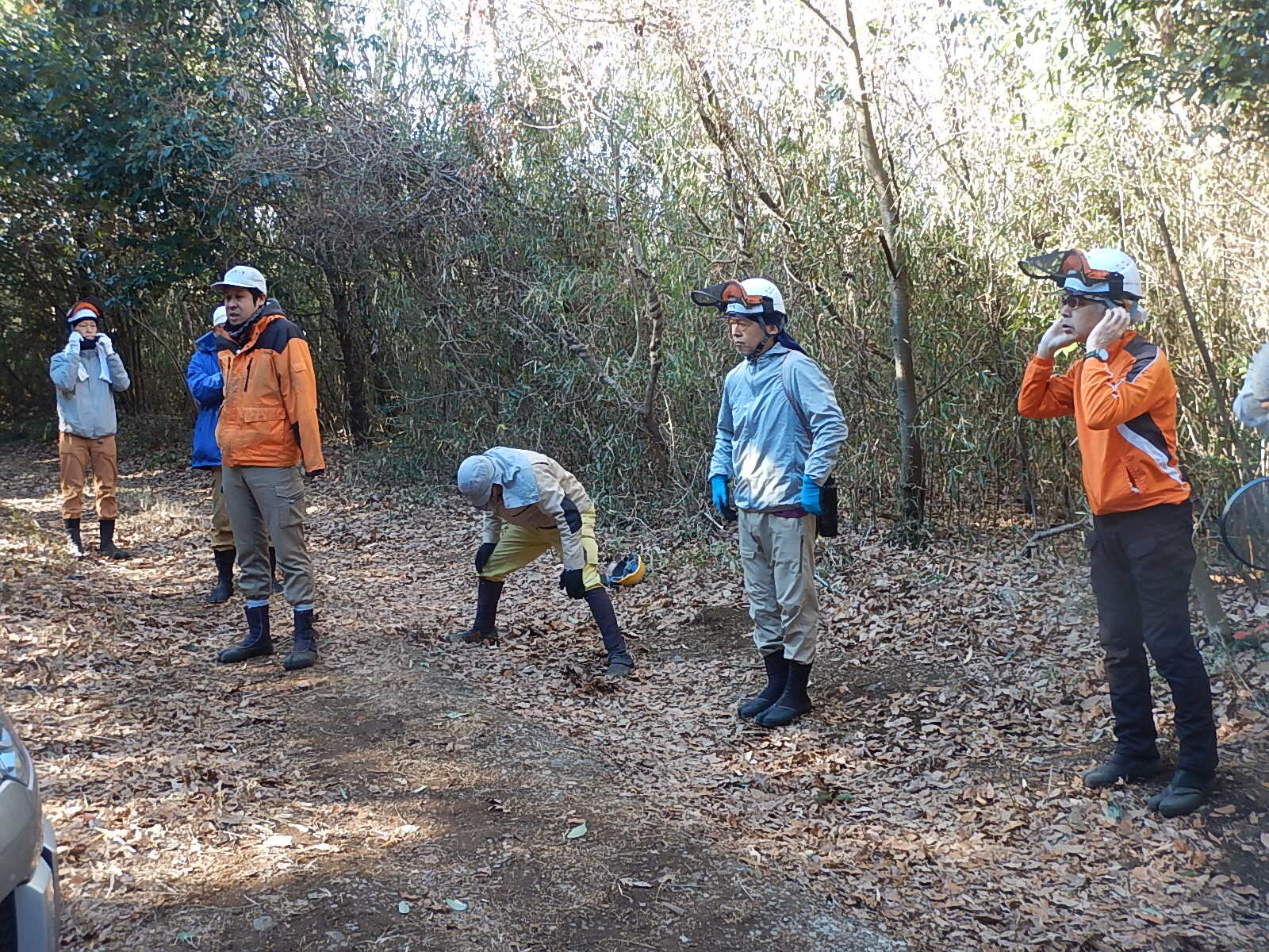 外で靴を履き替えて車に乗り込み、作業地へ向かいます。