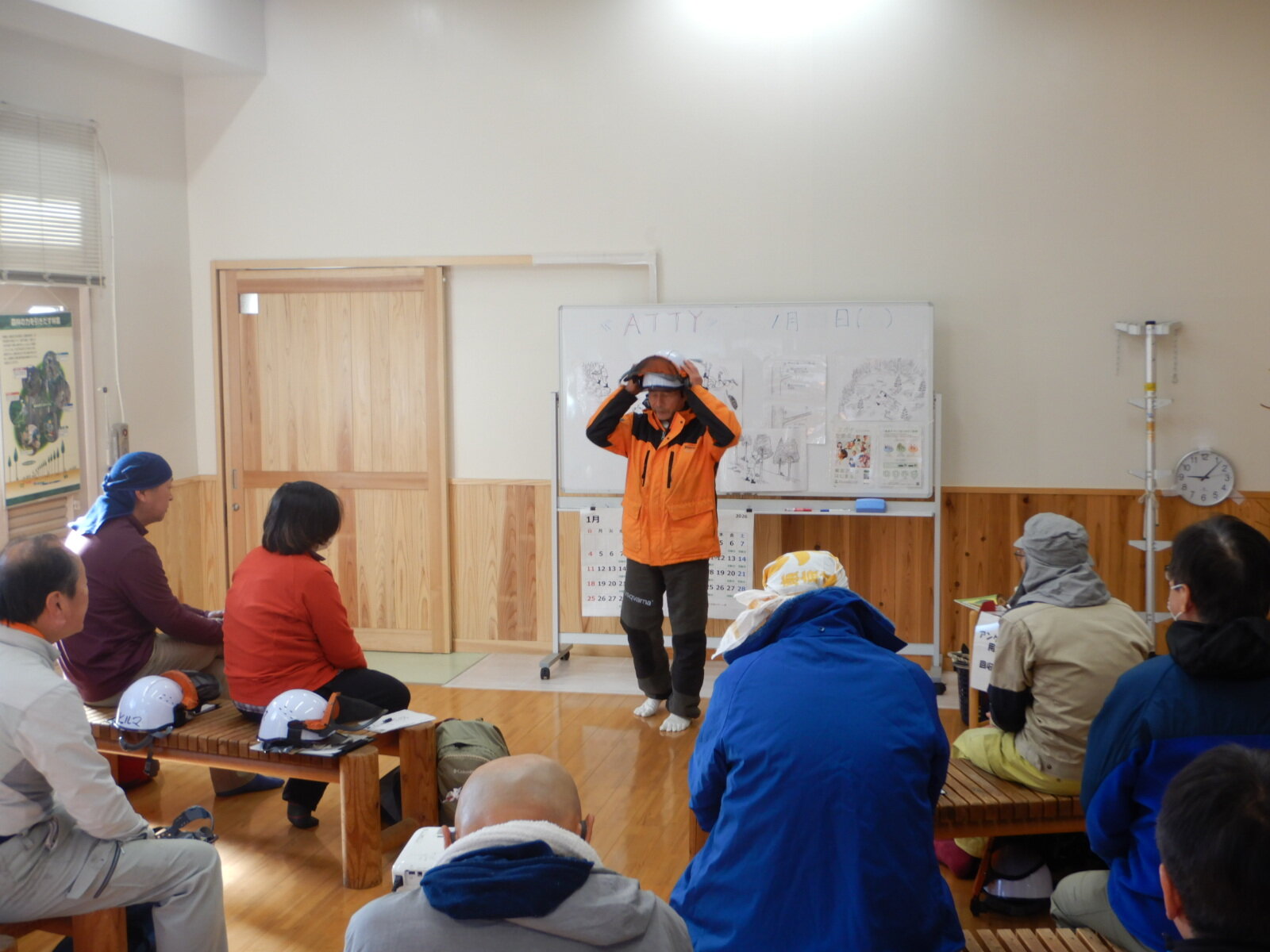 安全講習では基本であるヘルメットの被り方から新しくなった胴縄の使用方法まで、丁寧に指導員より説明がありました。