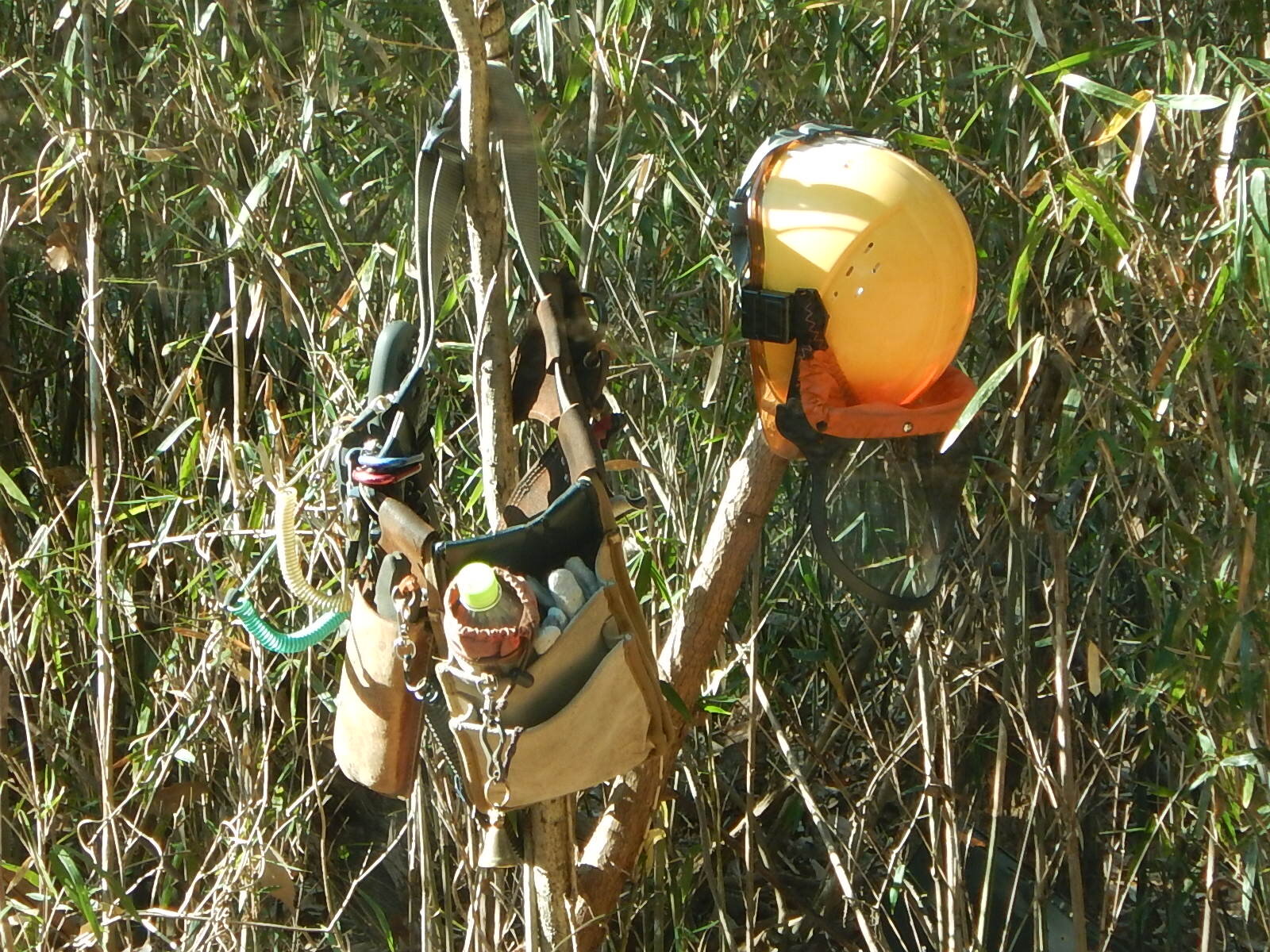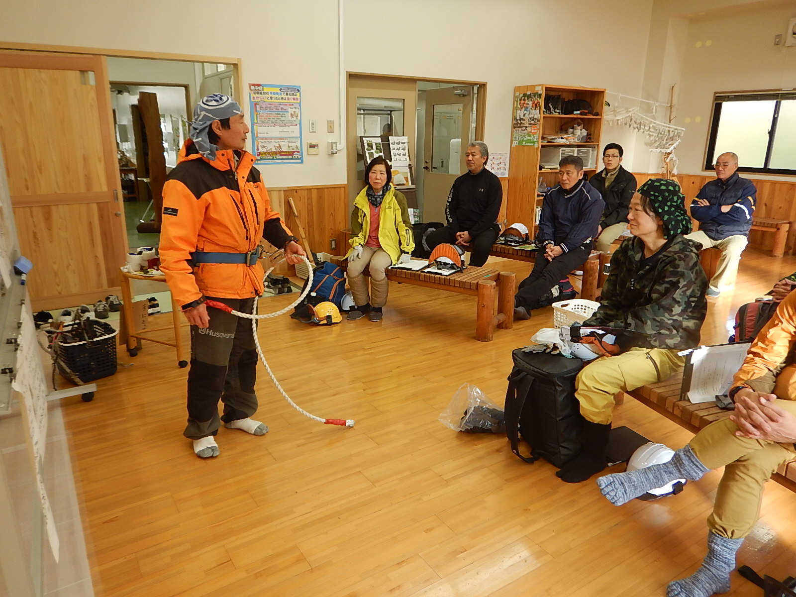 枝打ち作業で使用する胴縄ベルト(正式名称:林業用ワークポジショニング用器具)が新しくなりましたので、これまで使用していたものと違う点についても説明しました。