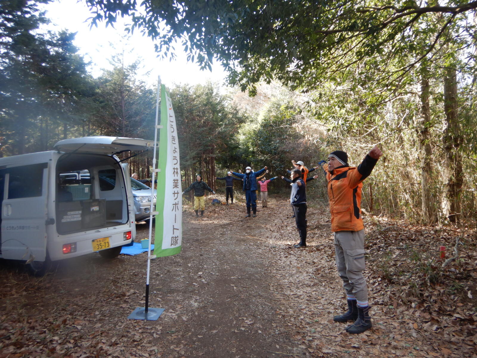 今日は山の神の日です。活動地の入り口にお米と塩を盛りお清めを行いました。本来は山に入って仕事はしない日なのだそうです。