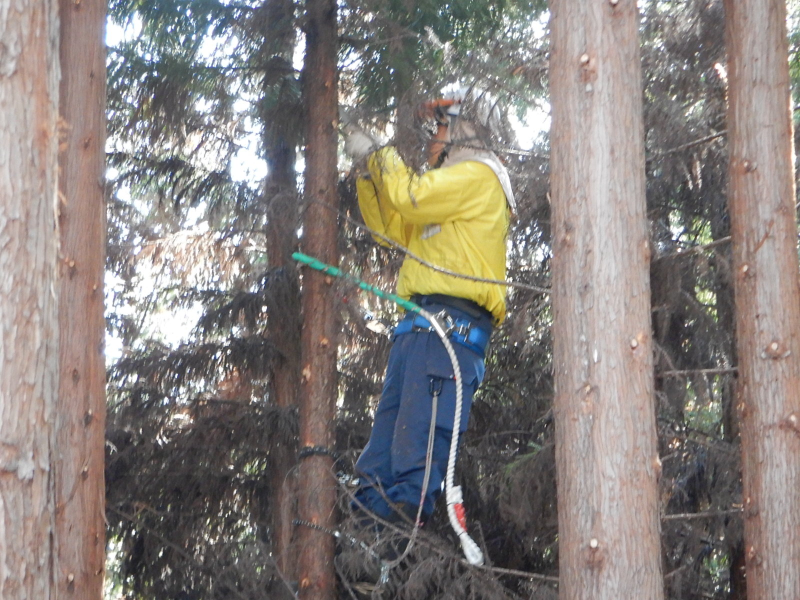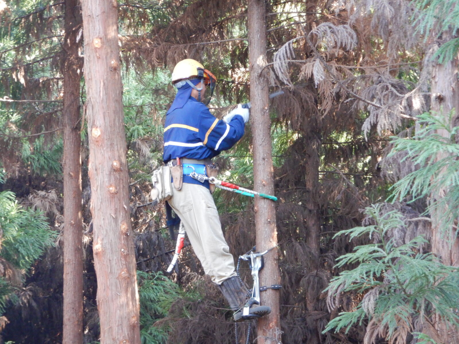 枯れ枝を中心に切っていきます。隣の木の枝が近いので周りの木に注意しながら行います。