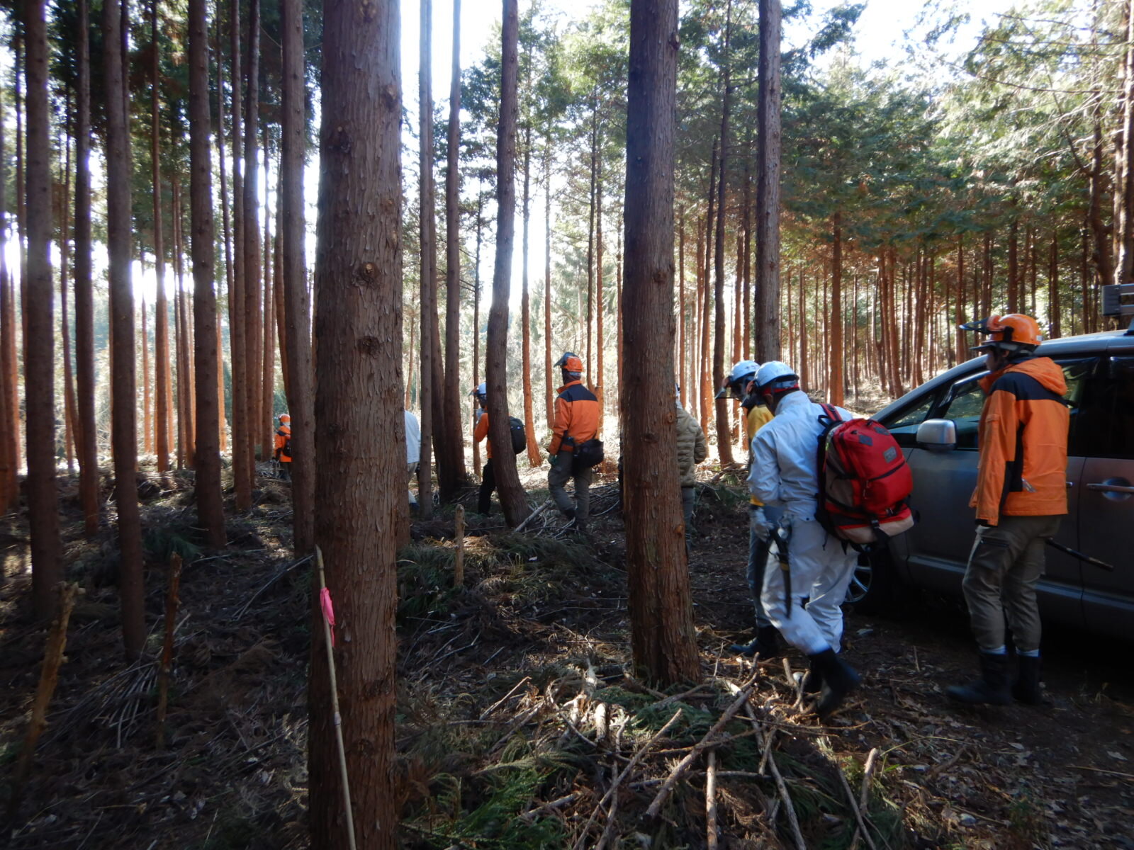 枝打ちが進んでいくと林内はどんどん明るくなっていきます。活動場所も徐々に山林の奥へと進んでいきます。