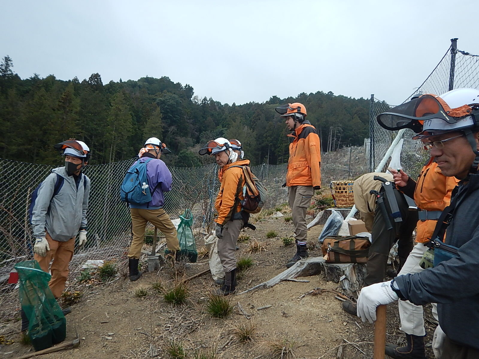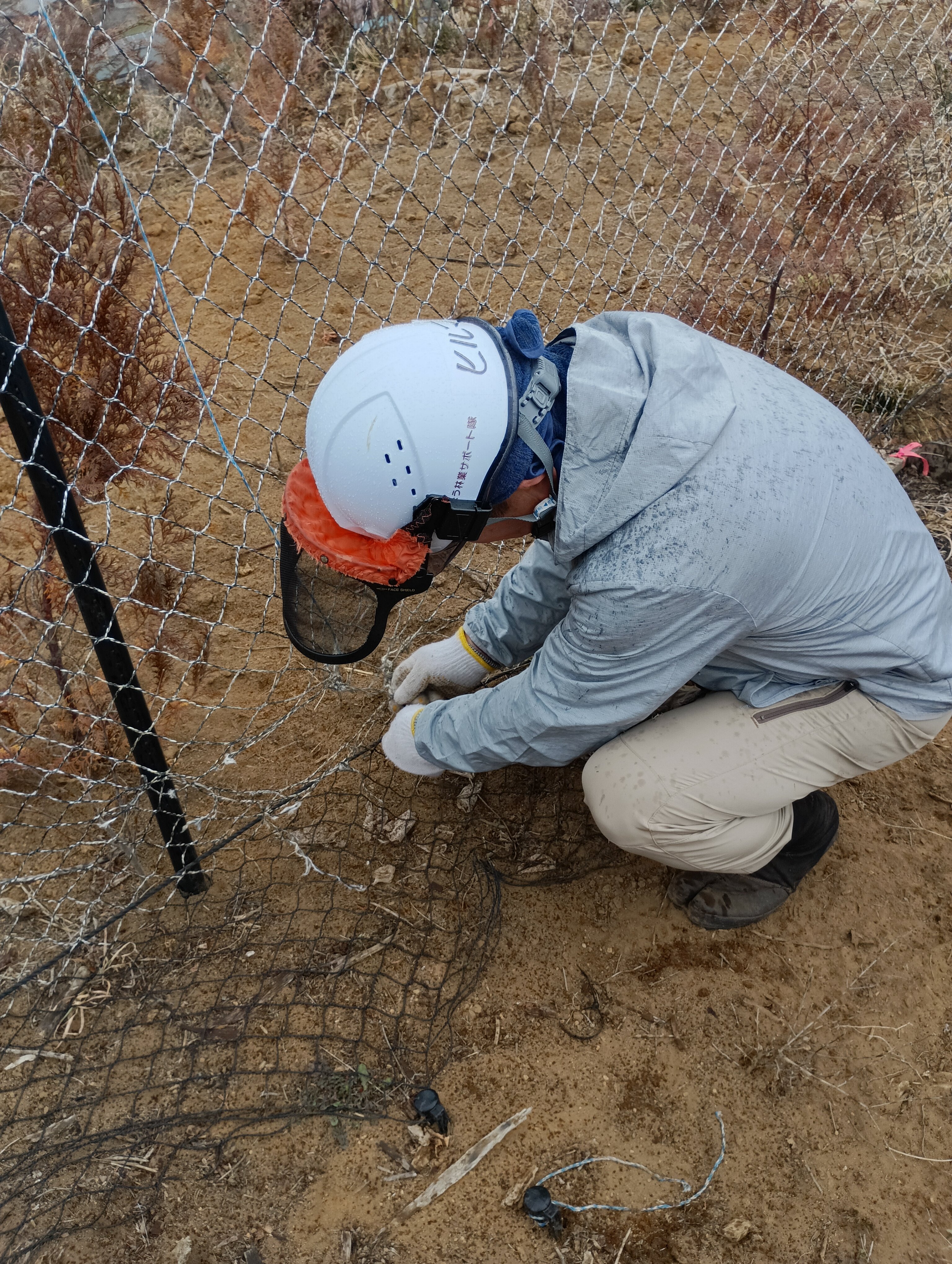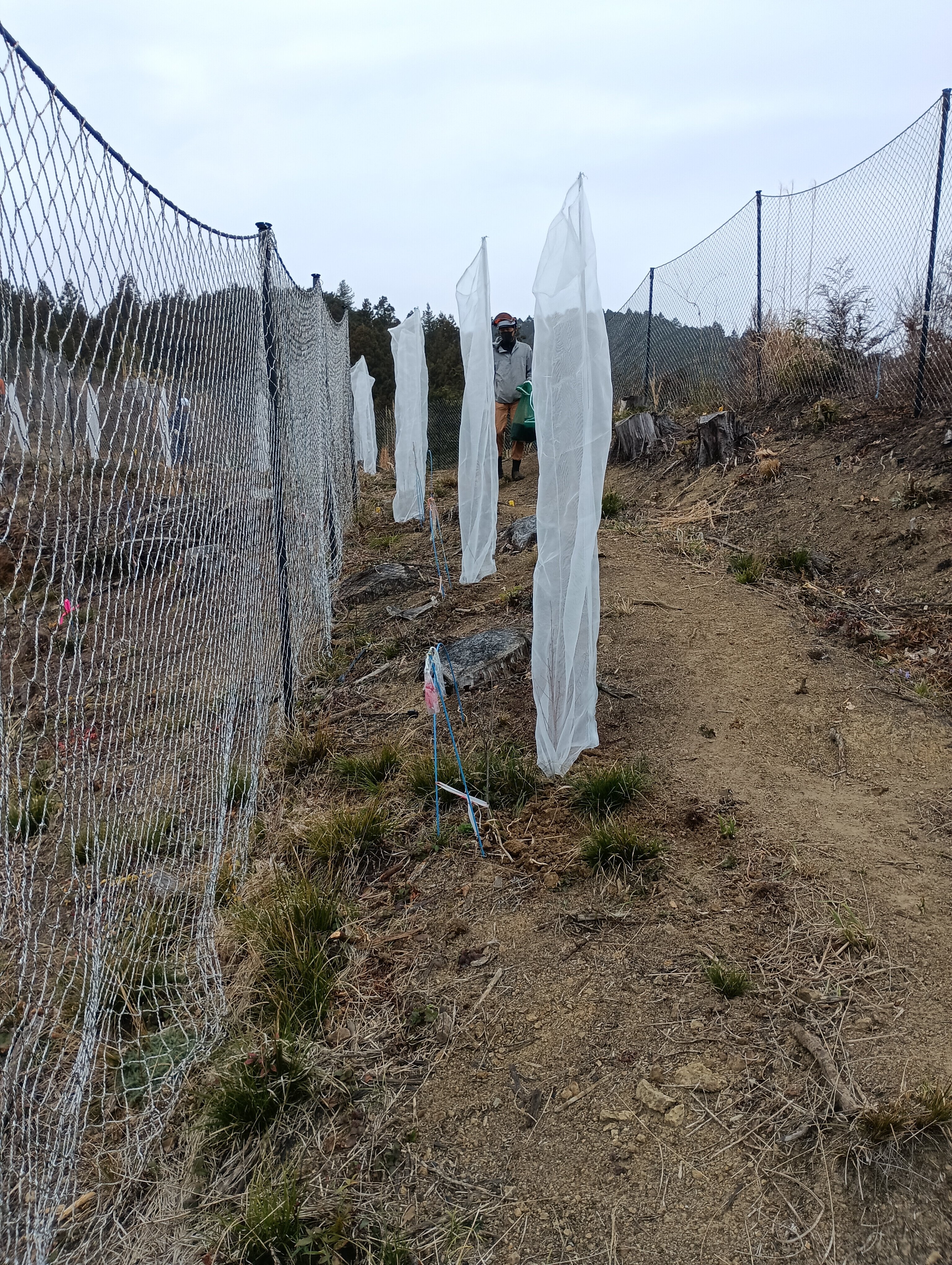 植栽、鹿柵の補修、雨が降る直前に終わりました!