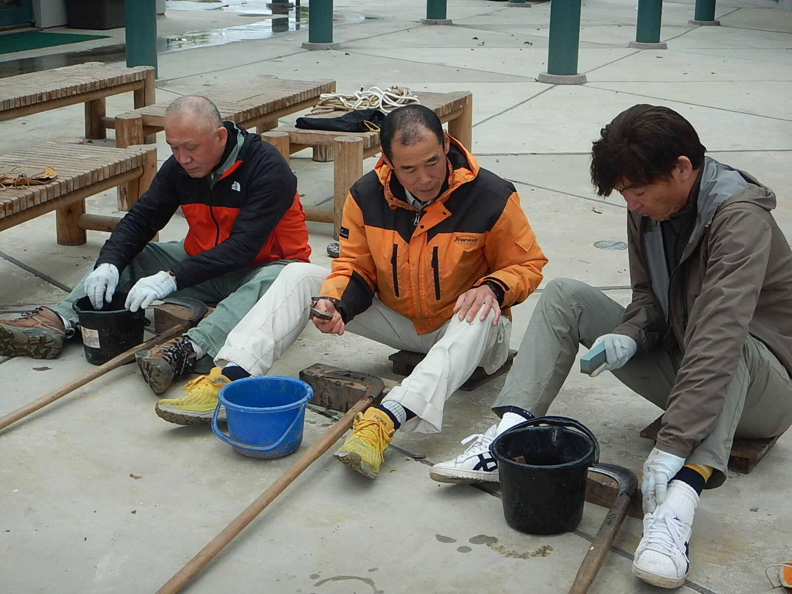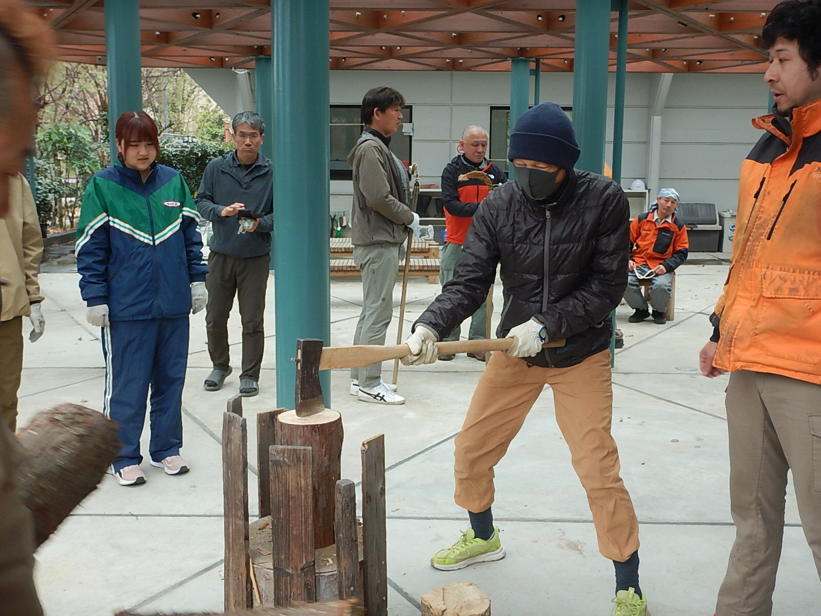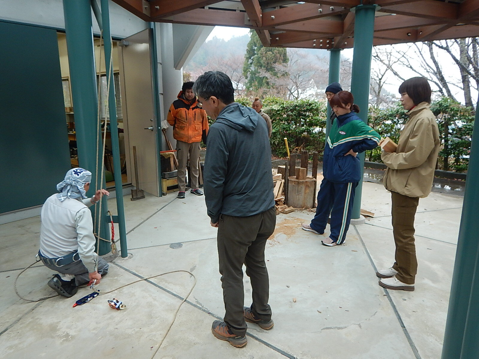 午後は希望者のみ、鎌研ぎ、薪割、ロープワークを行いました。