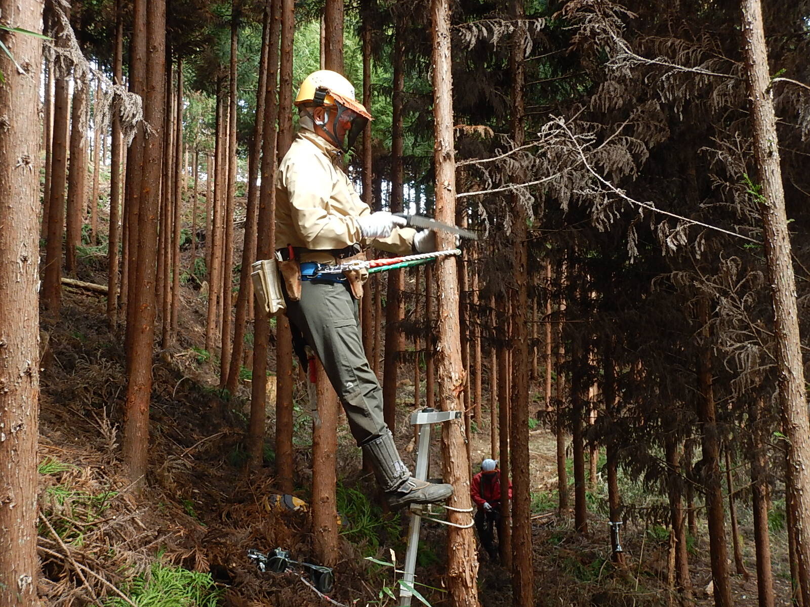 枝打経験メンバーは姿勢がとてもきれいです。基本の姿勢が出来ています。