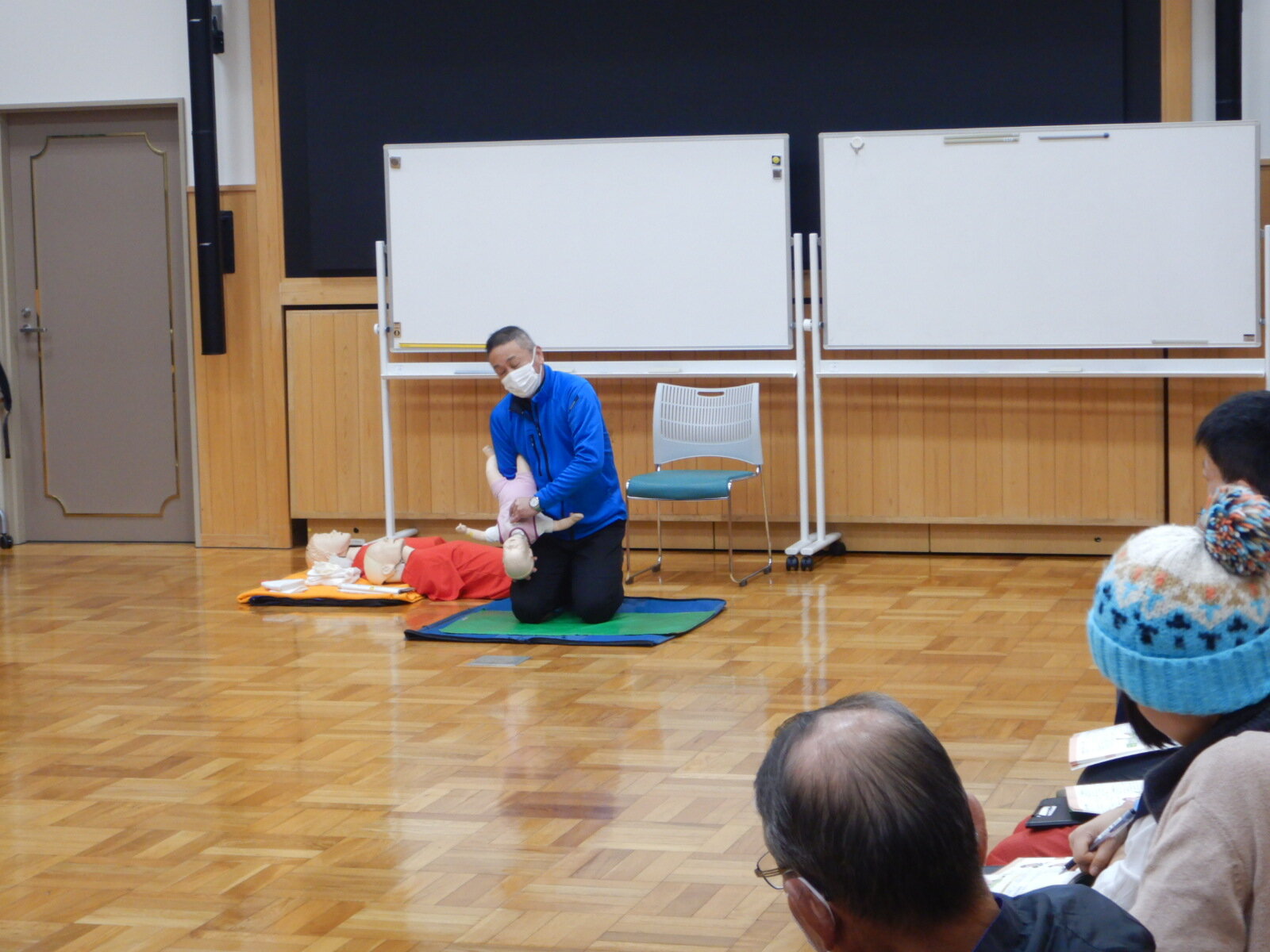 午前の最後に、心肺蘇生・AED使用方法について実技試験を行います。全員が合格しました。