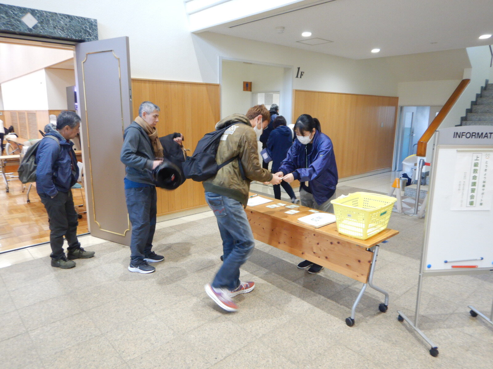 (公財)東京防災救急協会のお二人の講師と参加メンバー、事務局の紹介を行ってから本日の講習開始となりました。(配布物:上級救命講習テキスト・人工呼吸用マウスピース・三角巾)