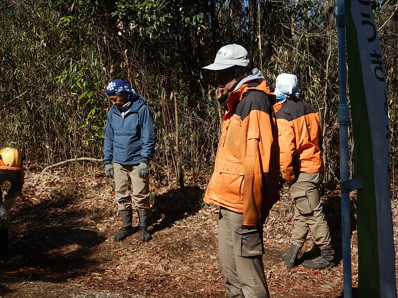 打った枝は木の根元に横伏し、足を使ってかさを減らす作業を行いました。