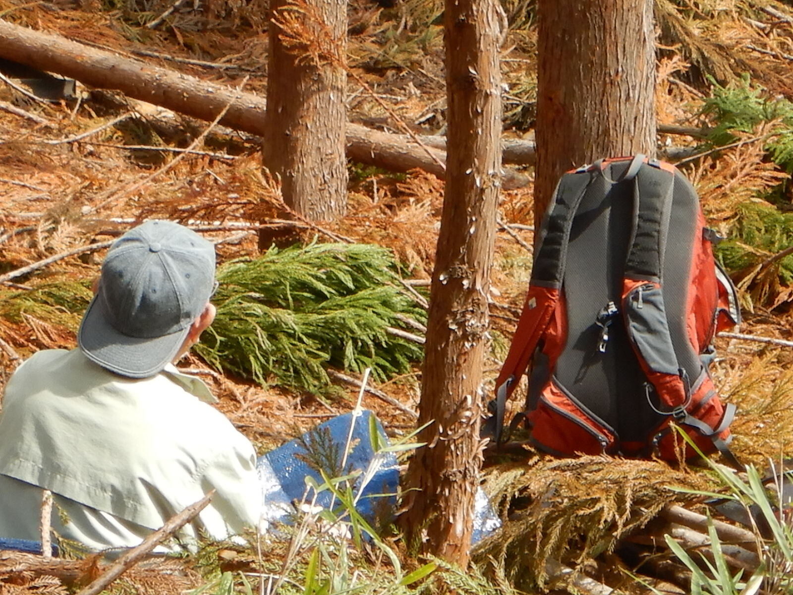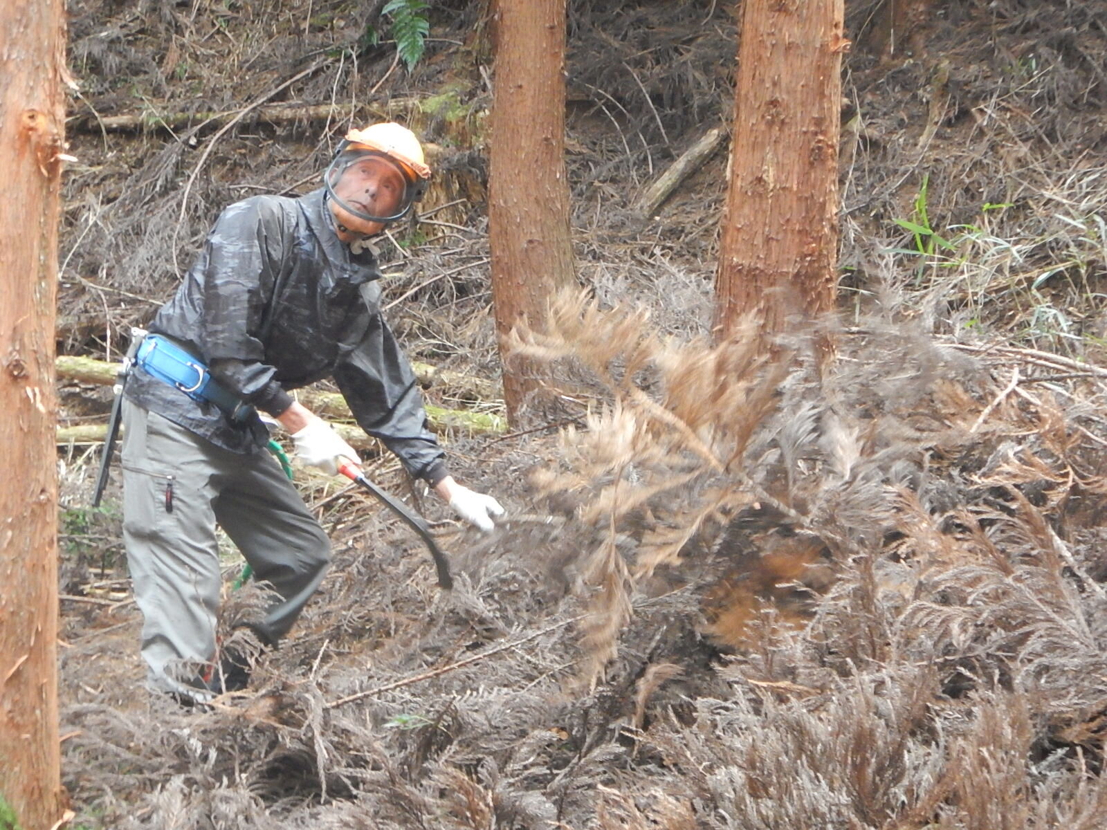 伐った枝は木の根元に横伏せにします。横伏せ(片付け)も大切な作業です。