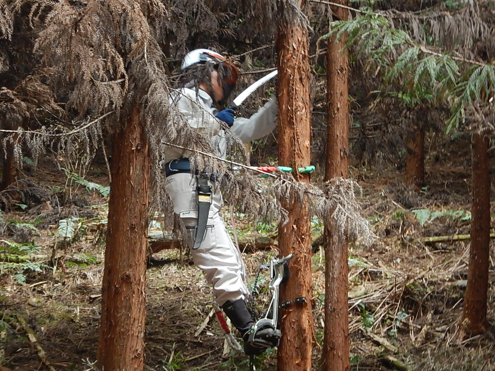登降機を使うのが初めてだったお二人も、しっかり枝打ちが出来るようになりました。